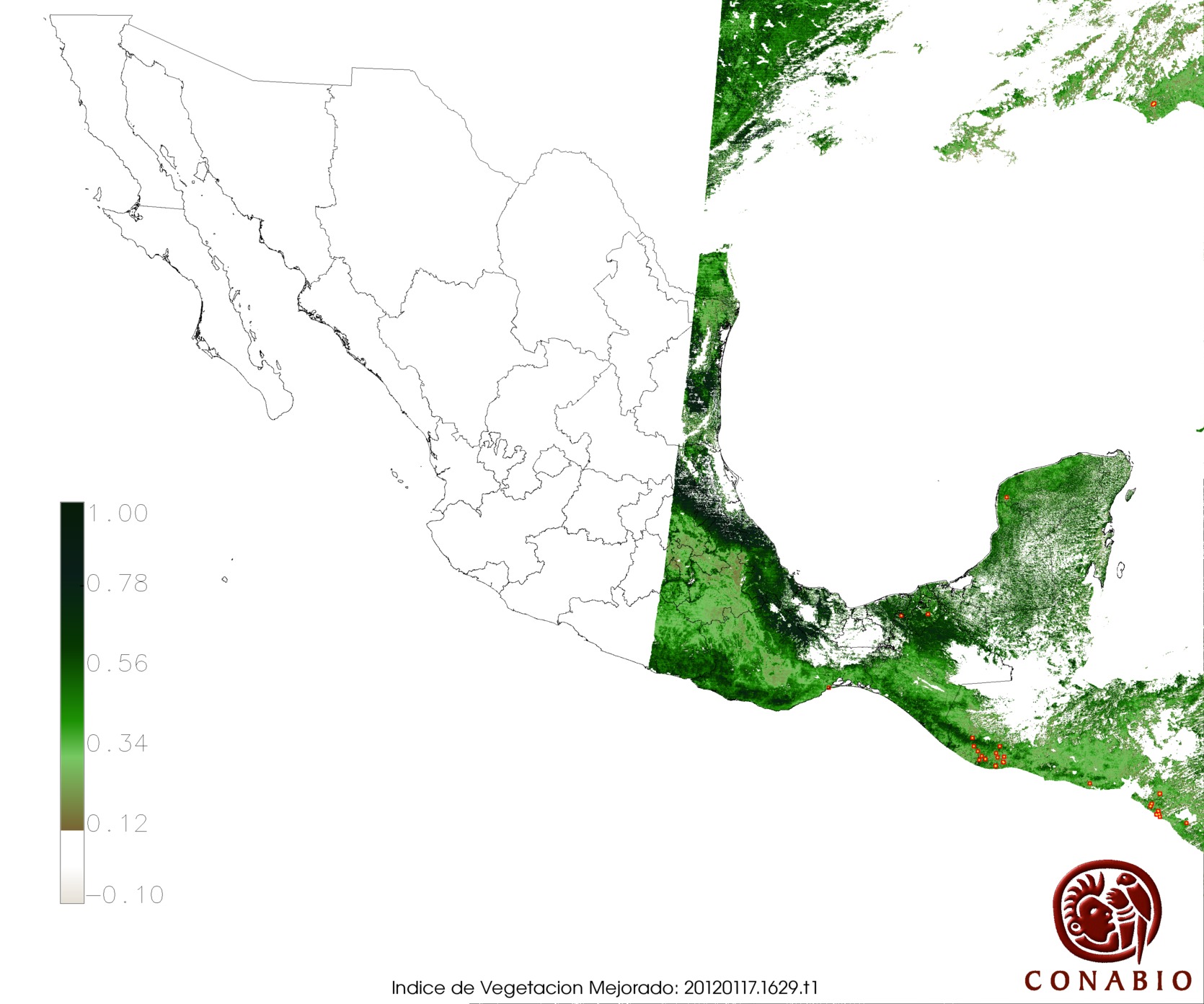 Nubosidad en el terreno:14% Nubosidad sobre México:3% Datos nulos en la escena:0% Datos nulos sobre México:0% |