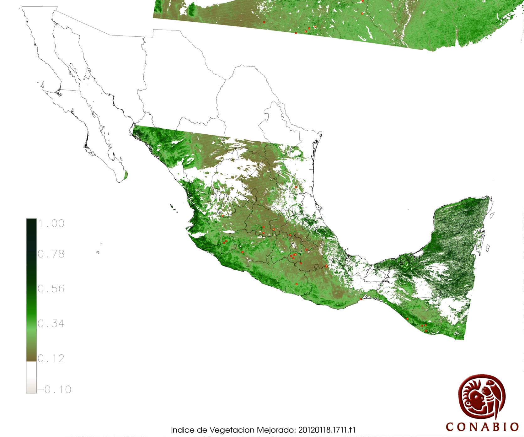 Nubosidad en el terreno:10% Nubosidad sobre México:13% Datos nulos en la escena:0% Datos nulos sobre México:0% |