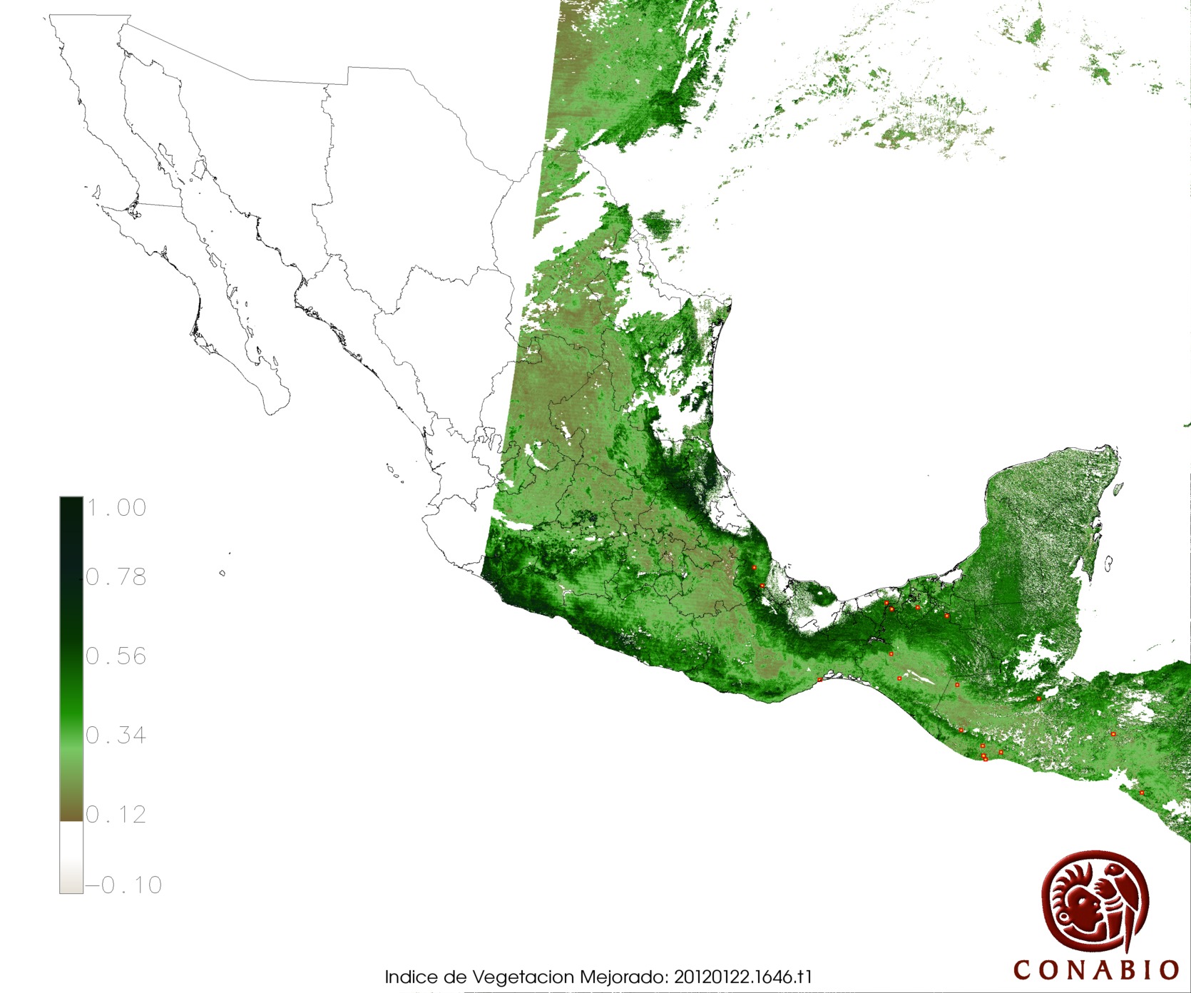 Los valores del índice van de -1 a 1, entre más cercano al valor 1 la vegetación presenta mayor vigor. Los índices de vegetación son utilizados para conocer el comportamiento de la vegetación tanto espacial como temporal. |
