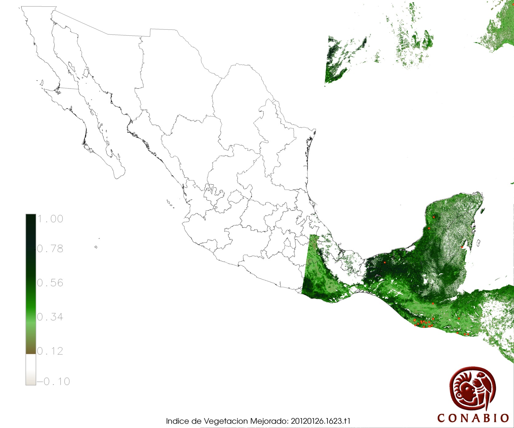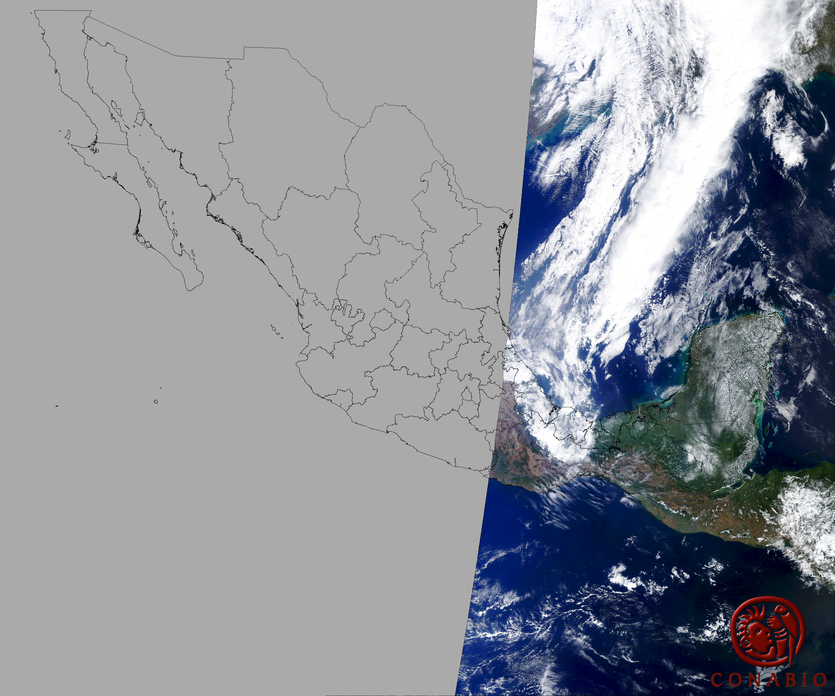 Nubosidad en el terreno:14% Nubosidad sobre México:3% Datos nulos en la escena:0% Datos nulos sobre México:0% |