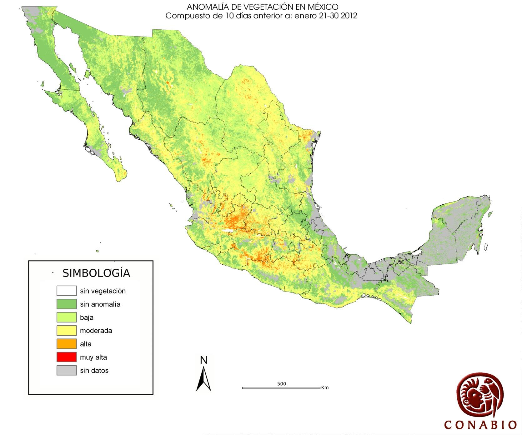 Los valores del índice van de -1 a 1, entre más cercano al valor 1 la vegetación presenta mayor vigor. Los índices de vegetación son utilizados para conocer el comportamiento de la vegetación tanto espacial como temporal. |