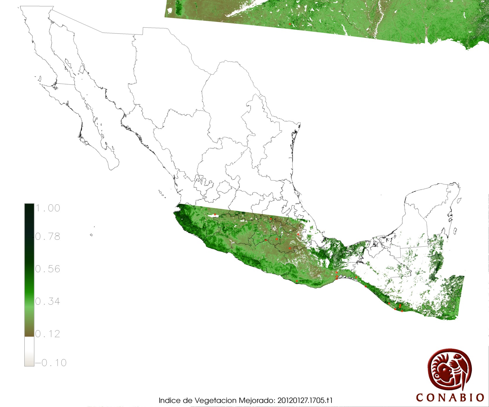 Nubosidad en el terreno:7% Nubosidad sobre México:7% Datos nulos en la escena:0% Datos nulos sobre México:0% |