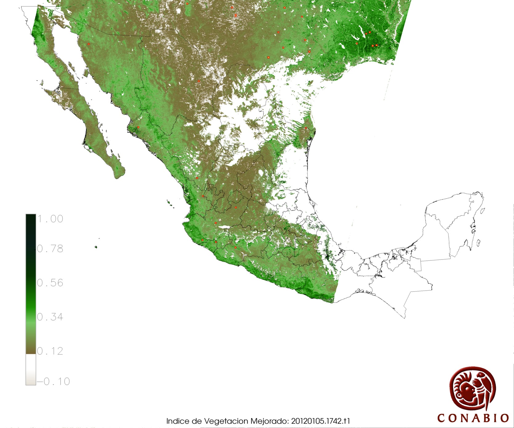 Nubosidad en el terreno:11% Nubosidad sobre México:14% Datos nulos en la escena:0% Datos nulos sobre México:0% |