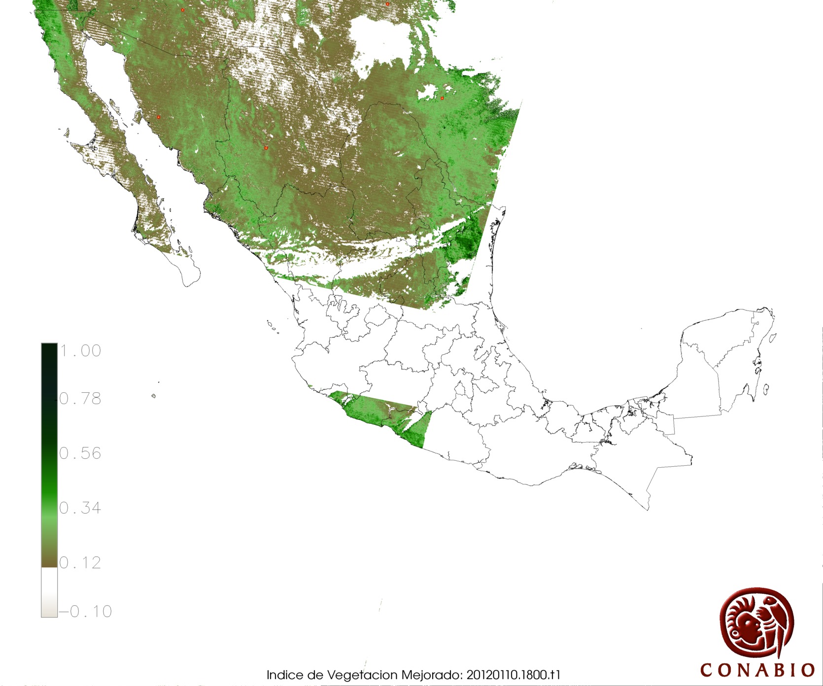 Nubosidad en el terreno:9% Nubosidad sobre México:5% Datos nulos en la escena:0% Datos nulos sobre México:0% |
