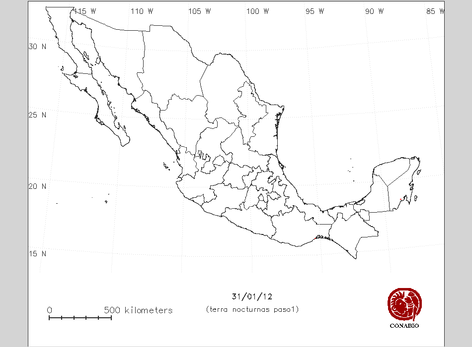 | 2 | -88 30 36 | 18 37 10 | Pastizal cultivado | Othón P. Blanco,Quintana Roo | NO AFECTA | 0 ° | ND | ||