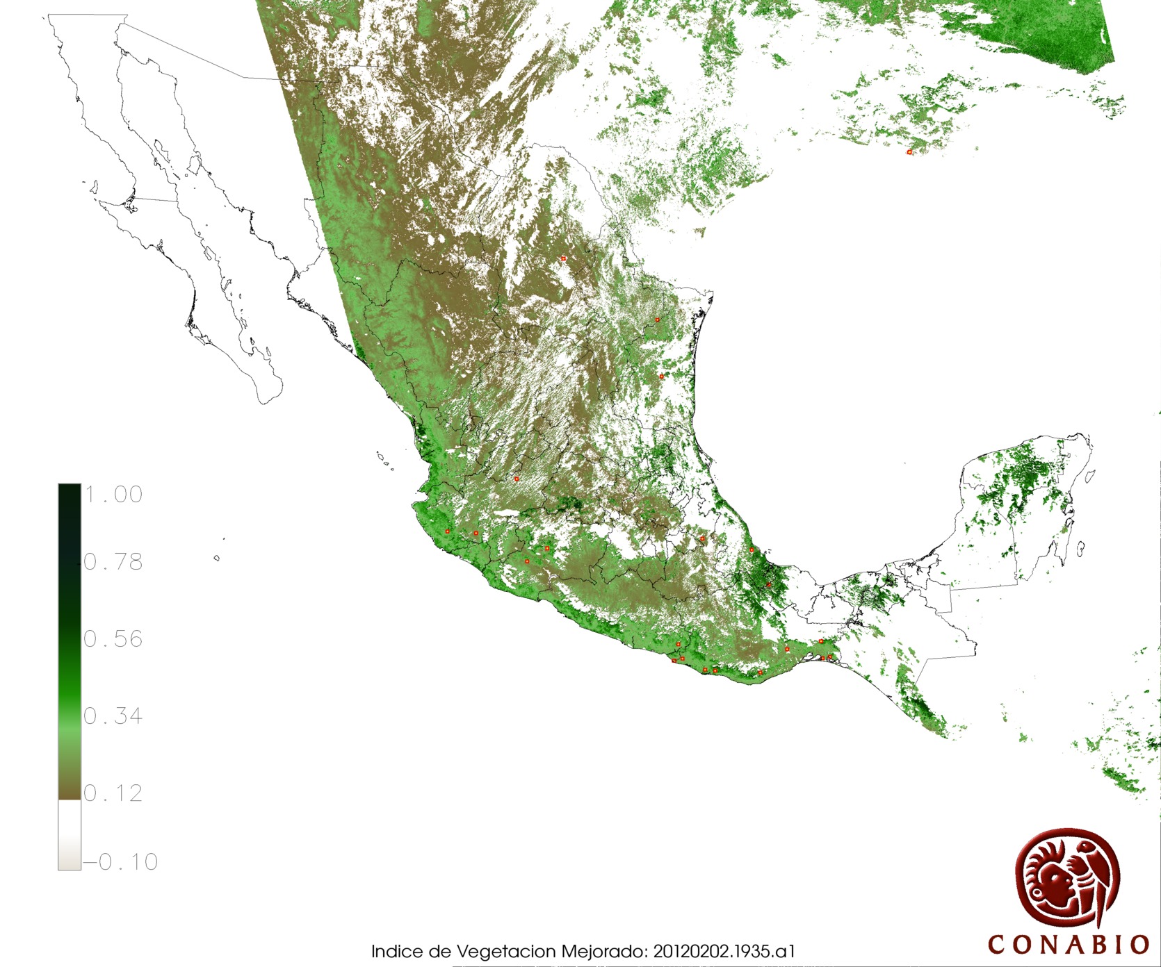 Los valores del índice van de -1 a 1, entre más cercano al valor 1 la vegetación presenta mayor vigor. Los índices de vegetación son utilizados para conocer el comportamiento de la vegetación tanto espacial como temporal. |