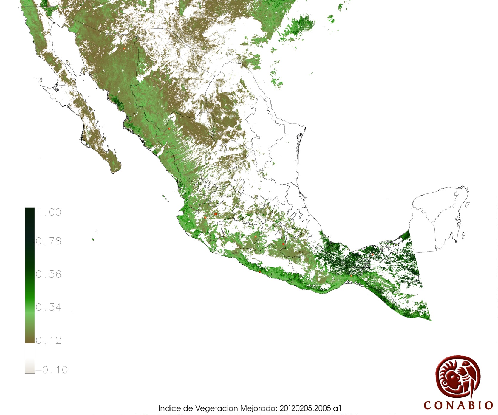 Los valores del índice van de -1 a 1, entre más cercano al valor 1 la vegetación presenta mayor vigor. Los índices de vegetación son utilizados para conocer el comportamiento de la vegetación tanto espacial como temporal. |