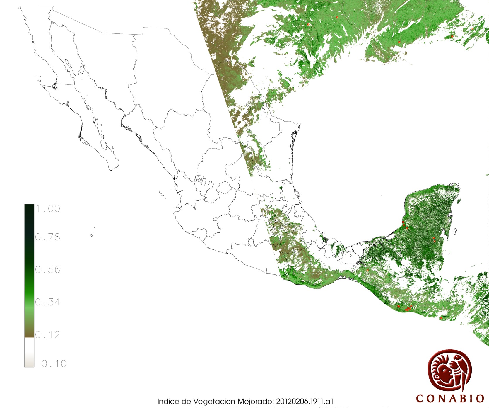 Los valores del índice van de -1 a 1, entre más cercano al valor 1 la vegetación presenta mayor vigor. Los índices de vegetación son utilizados para conocer el comportamiento de la vegetación tanto espacial como temporal. |