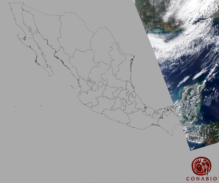 Nubosidad en el terreno:7% Nubosidad sobre México:1% Datos nulos en la escena:0% Datos nulos sobre México:0% |