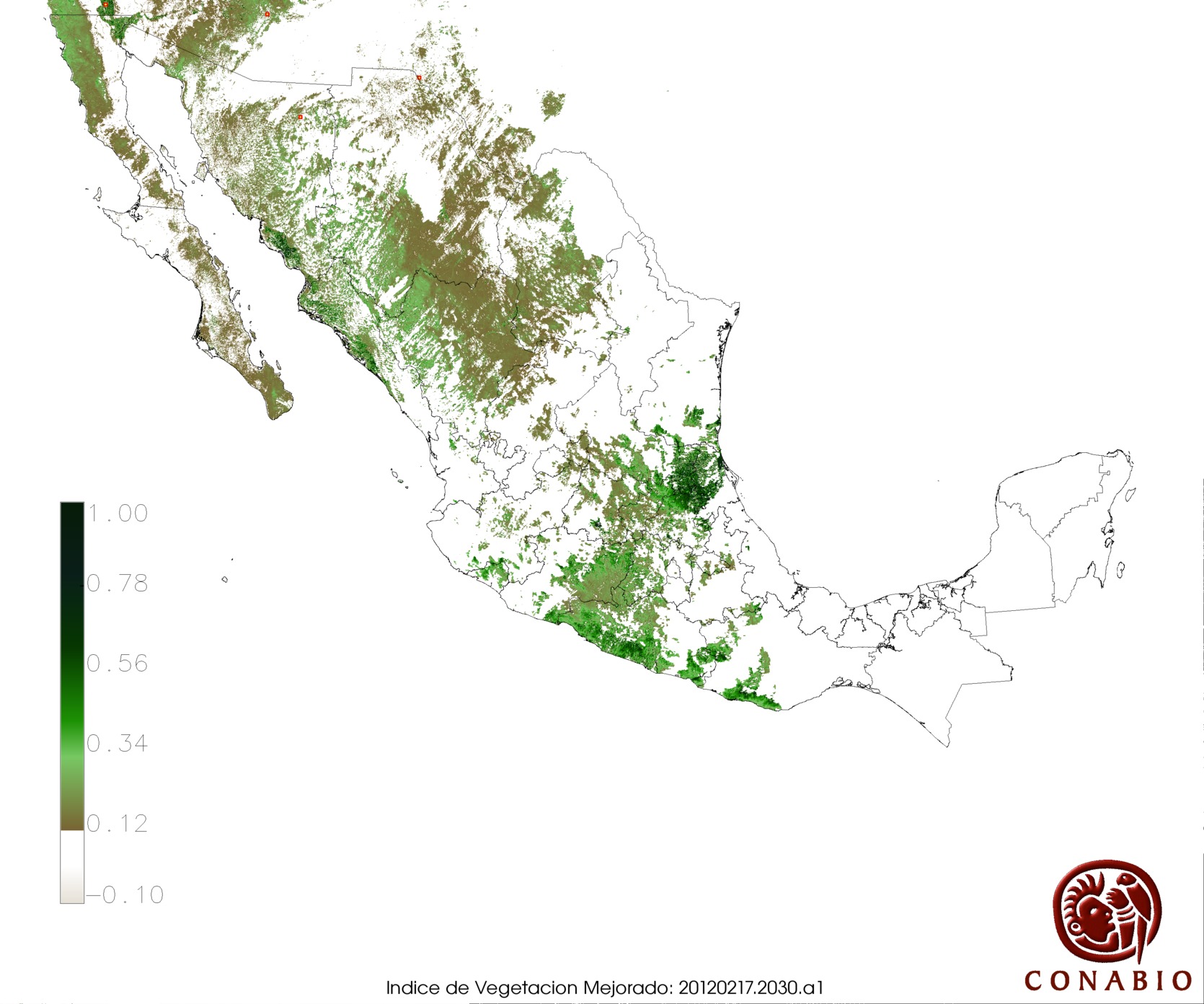 Los valores del índice van de -1 a 1, entre más cercano al valor 1 la vegetación presenta mayor vigor. Los índices de vegetación son utilizados para conocer el comportamiento de la vegetación tanto espacial como temporal. |