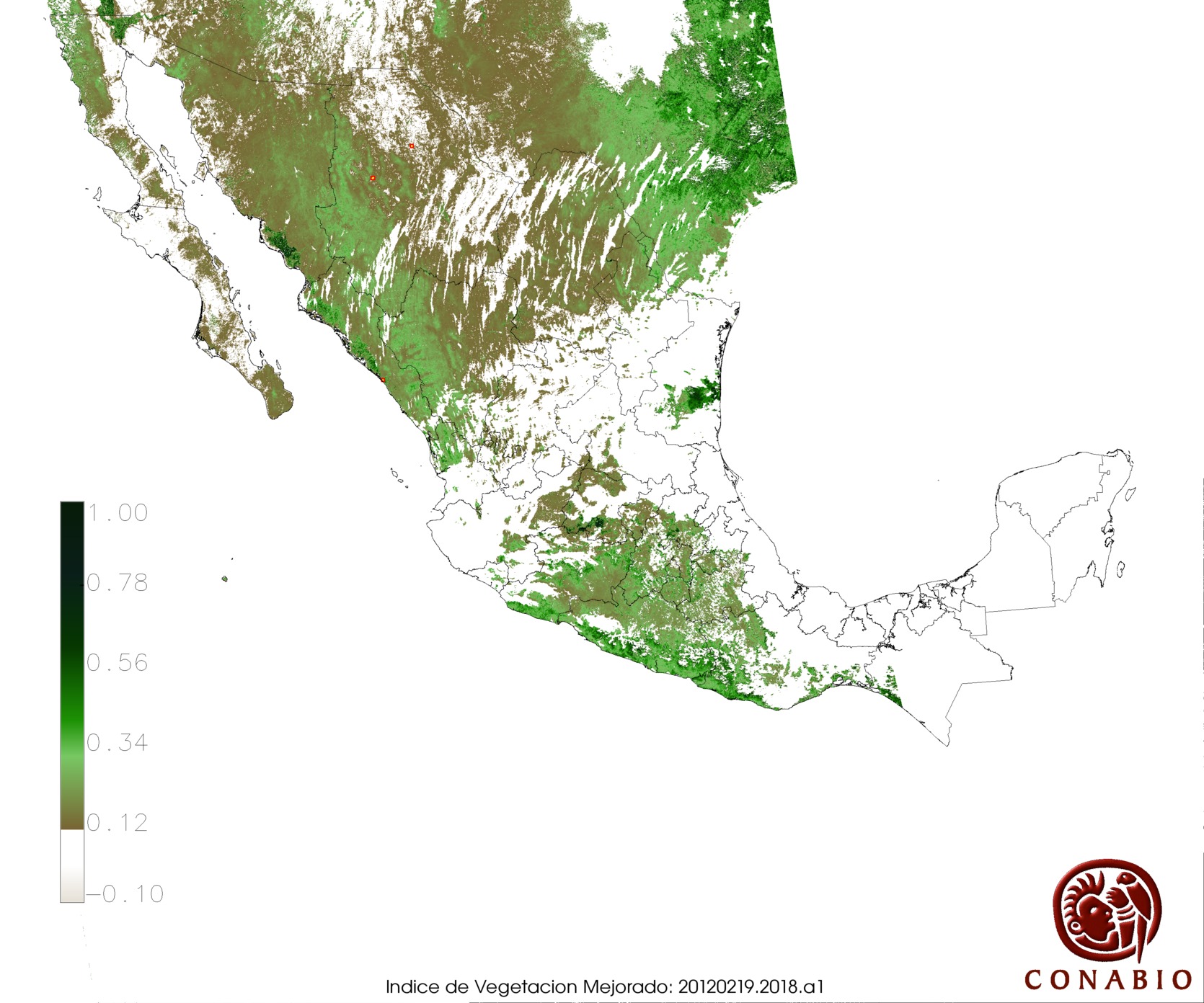 Los valores del índice van de -1 a 1, entre más cercano al valor 1 la vegetación presenta mayor vigor. Los índices de vegetación son utilizados para conocer el comportamiento de la vegetación tanto espacial como temporal. |