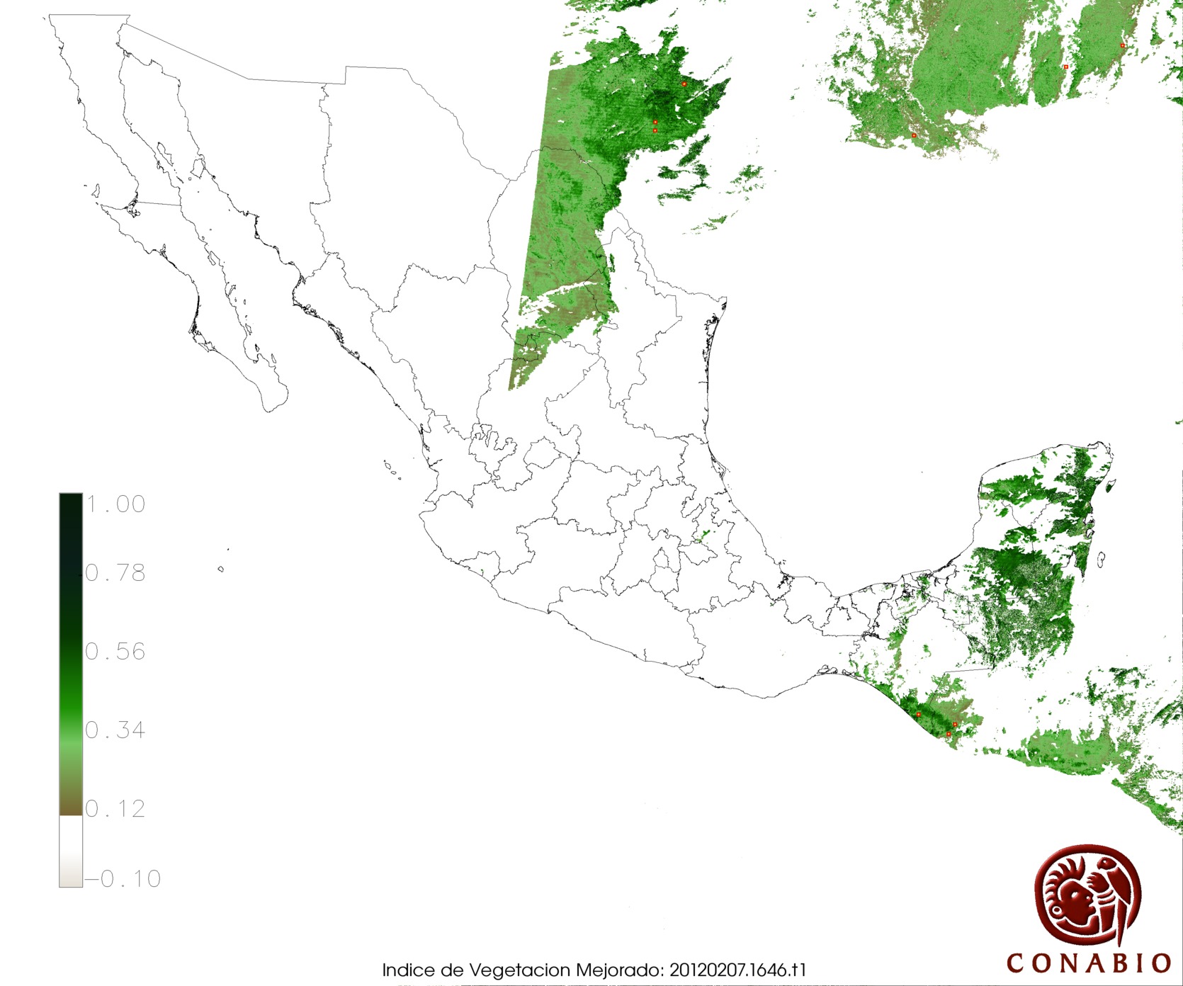 Nubosidad en el terreno:43% Nubosidad sobre México:44% Datos nulos en la escena:0% Datos nulos sobre México:0% |