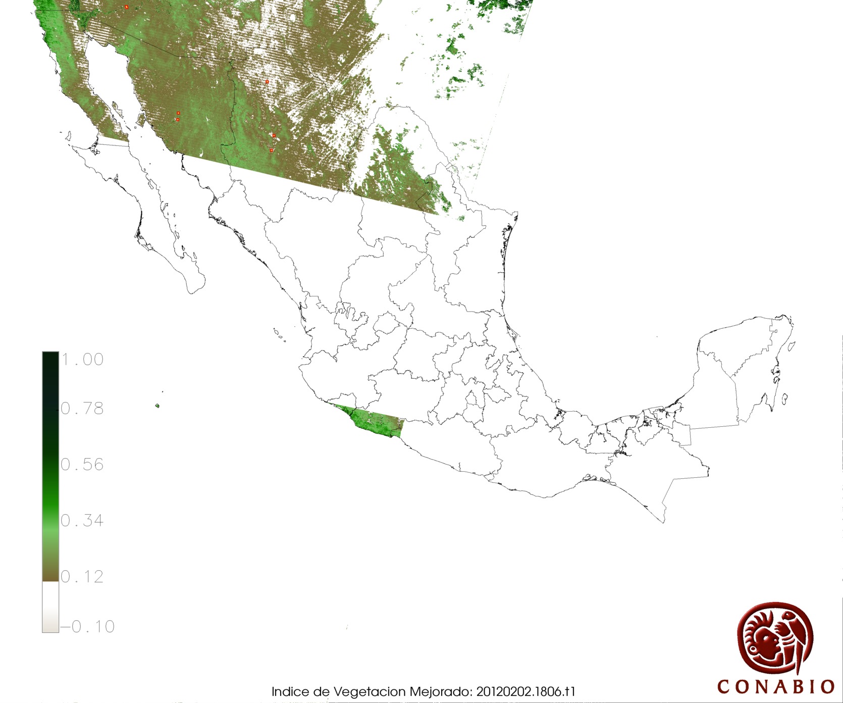 Los valores del índice van de -1 a 1, entre más cercano al valor 1 la vegetación presenta mayor vigor. Los índices de vegetación son utilizados para conocer el comportamiento de la vegetación tanto espacial como temporal. |