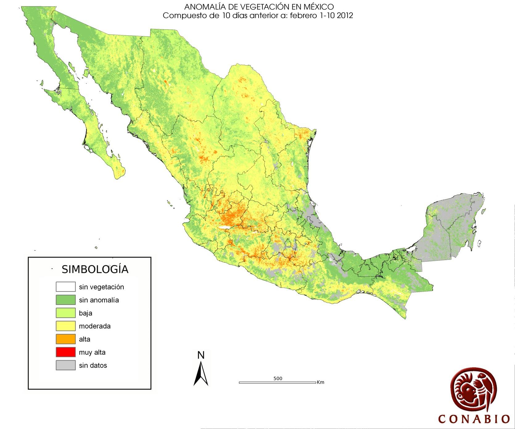 Los valores del índice van de -1 a 1, entre más cercano al valor 1 la vegetación presenta mayor vigor. Los índices de vegetación son utilizados para conocer el comportamiento de la vegetación tanto espacial como temporal. |