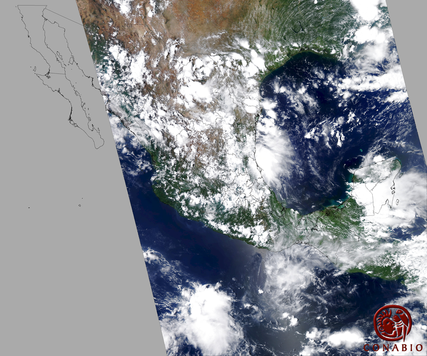 Nubosidad en el terreno:40% Nubosidad sobre México:45% Datos nulos en la escena:0% Datos nulos sobre México:0% |