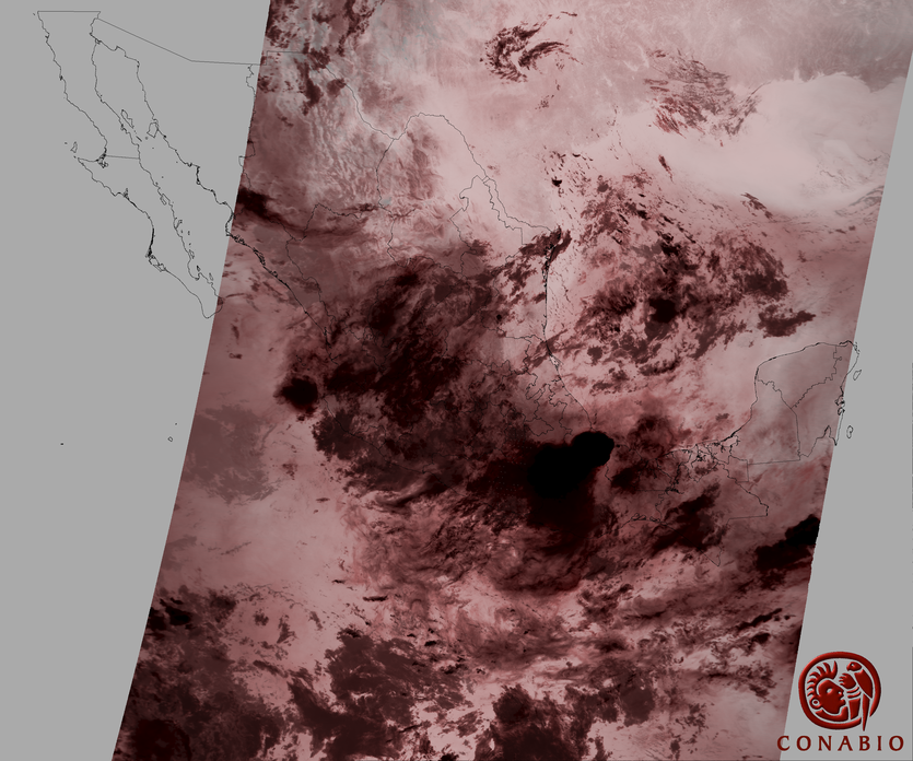 Nubosidad en el terreno:16% Nubosidad sobre México:25% Datos nulos en la escena:0% Datos nulos sobre México:0% |