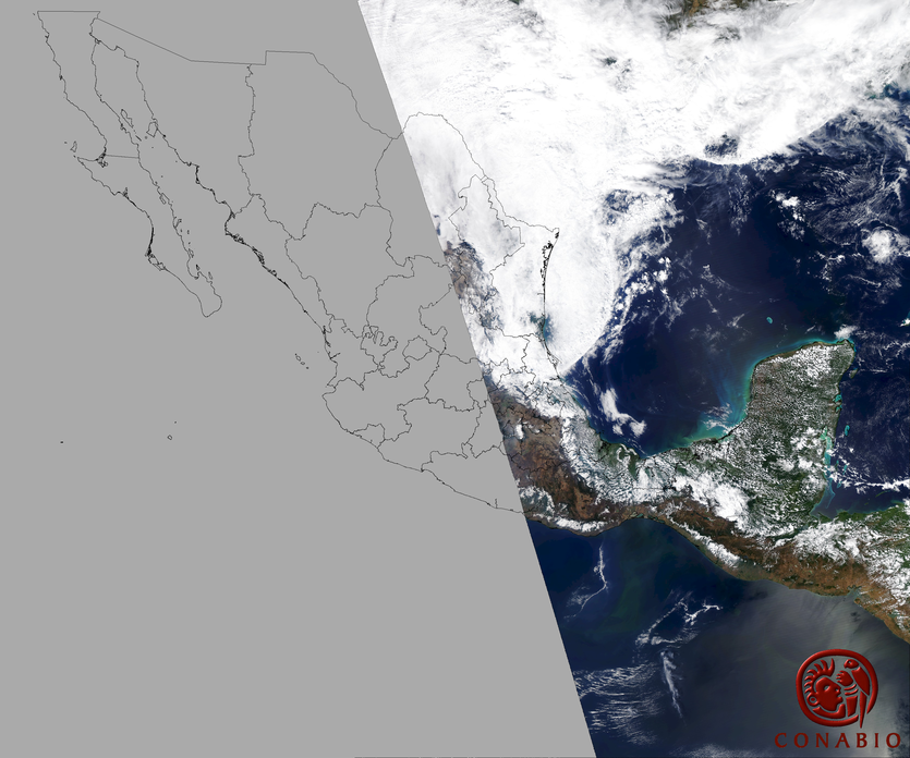 Nubosidad en el terreno:36% Nubosidad sobre México:17% Datos nulos en la escena:0% Datos nulos sobre México:0% |
