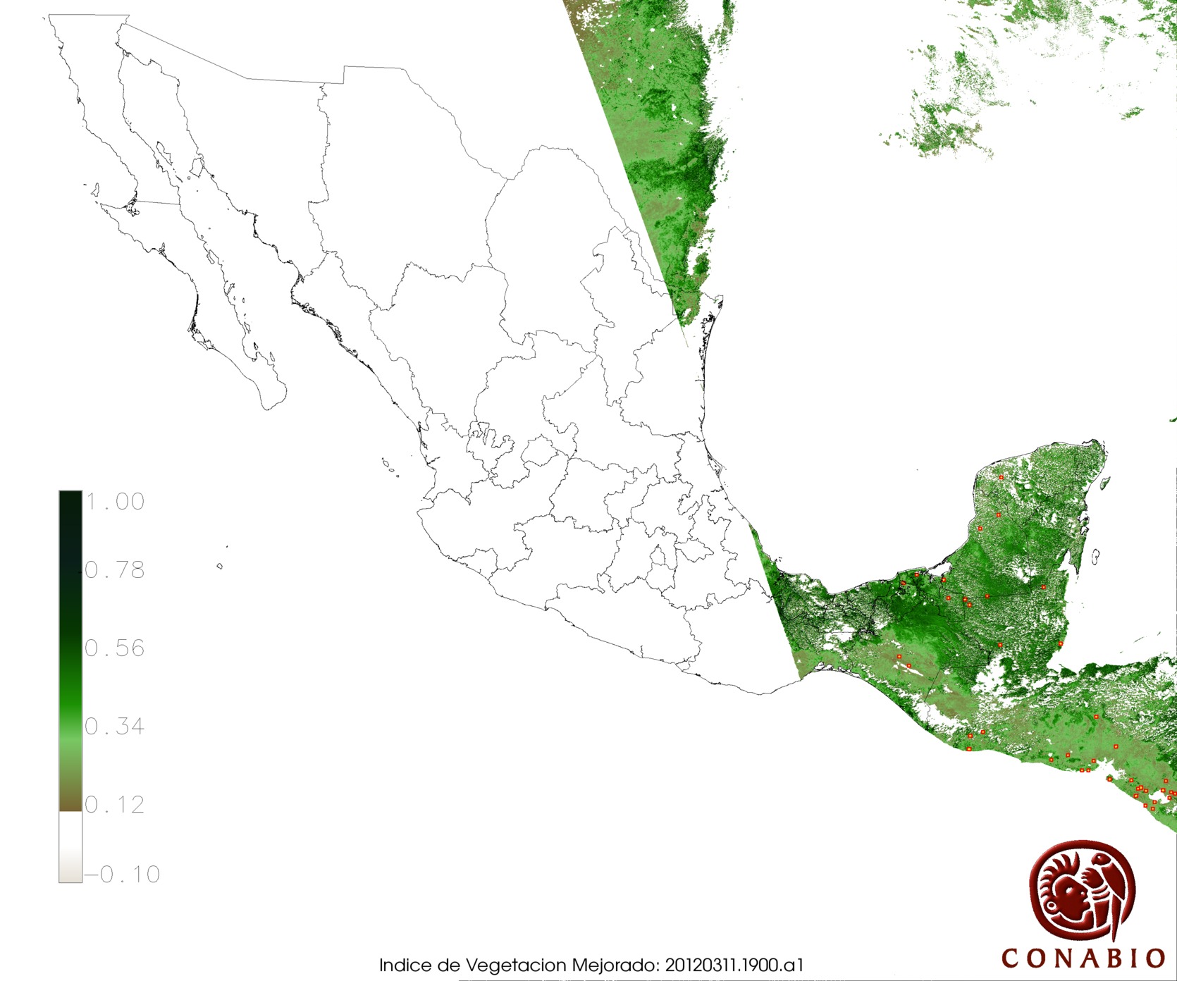 Nubosidad en el terreno:15% Nubosidad sobre México:1% Datos nulos en la escena:0% Datos nulos sobre México:0% |