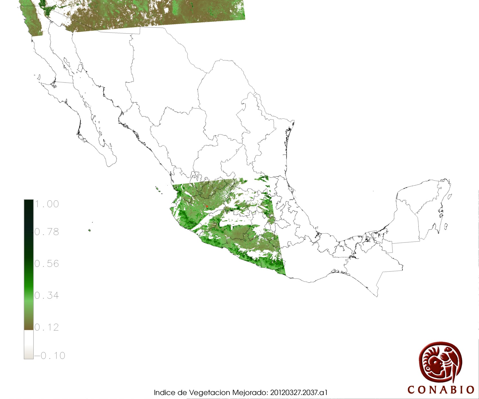 Nubosidad en el terreno:3% Nubosidad sobre México:6% Datos nulos en la escena:0% Datos nulos sobre México:0% |
