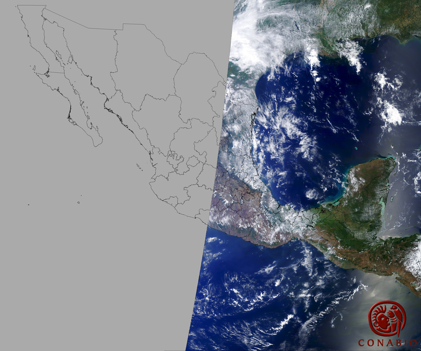 Nubosidad en el terreno:11% Nubosidad sobre México:5% Datos nulos en la escena:0% Datos nulos sobre México:0% |