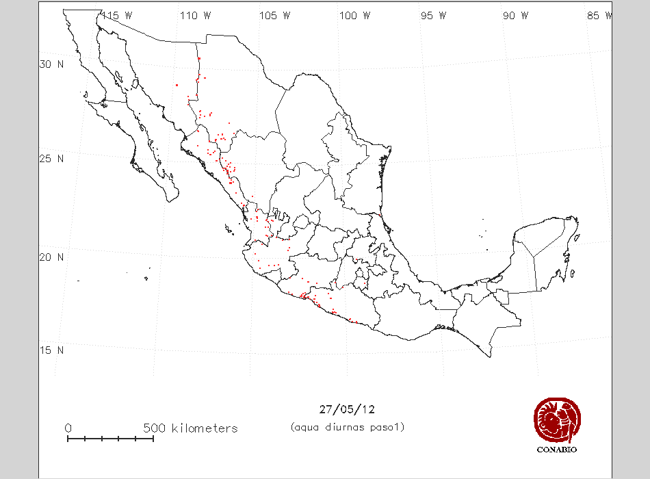 | X | 27 | 2 | -107 6 8 | 26 21 23 | Bosque de pino-encino | Guadalupe y Calvo,Chihuahua | NO AFECTA | 22 ° | Bajo |