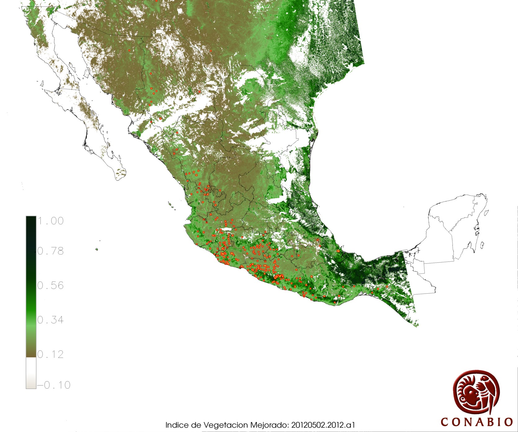 | 56 | 1 | -101 33 21 | 18 3 53 | Pastizal cultivado | Coahuayutla de José María Izazaga,Guerrero | NO AFECTA | 1 ° | Normal | |
