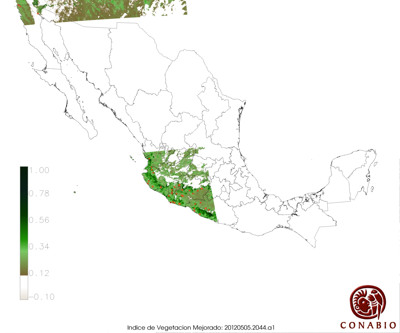 Nubosidad en el terreno:3% Nubosidad sobre México:3% Datos nulos en la escena:0% Datos nulos sobre México:0% |