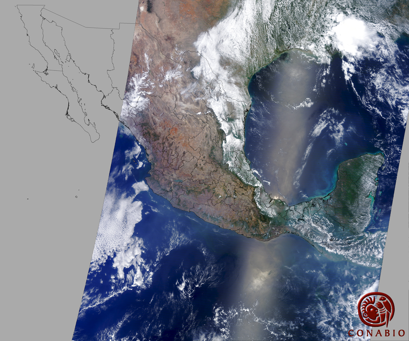 Nubosidad en el terreno:14% Nubosidad sobre México:8% Datos nulos en la escena:0% Datos nulos sobre México:0% |