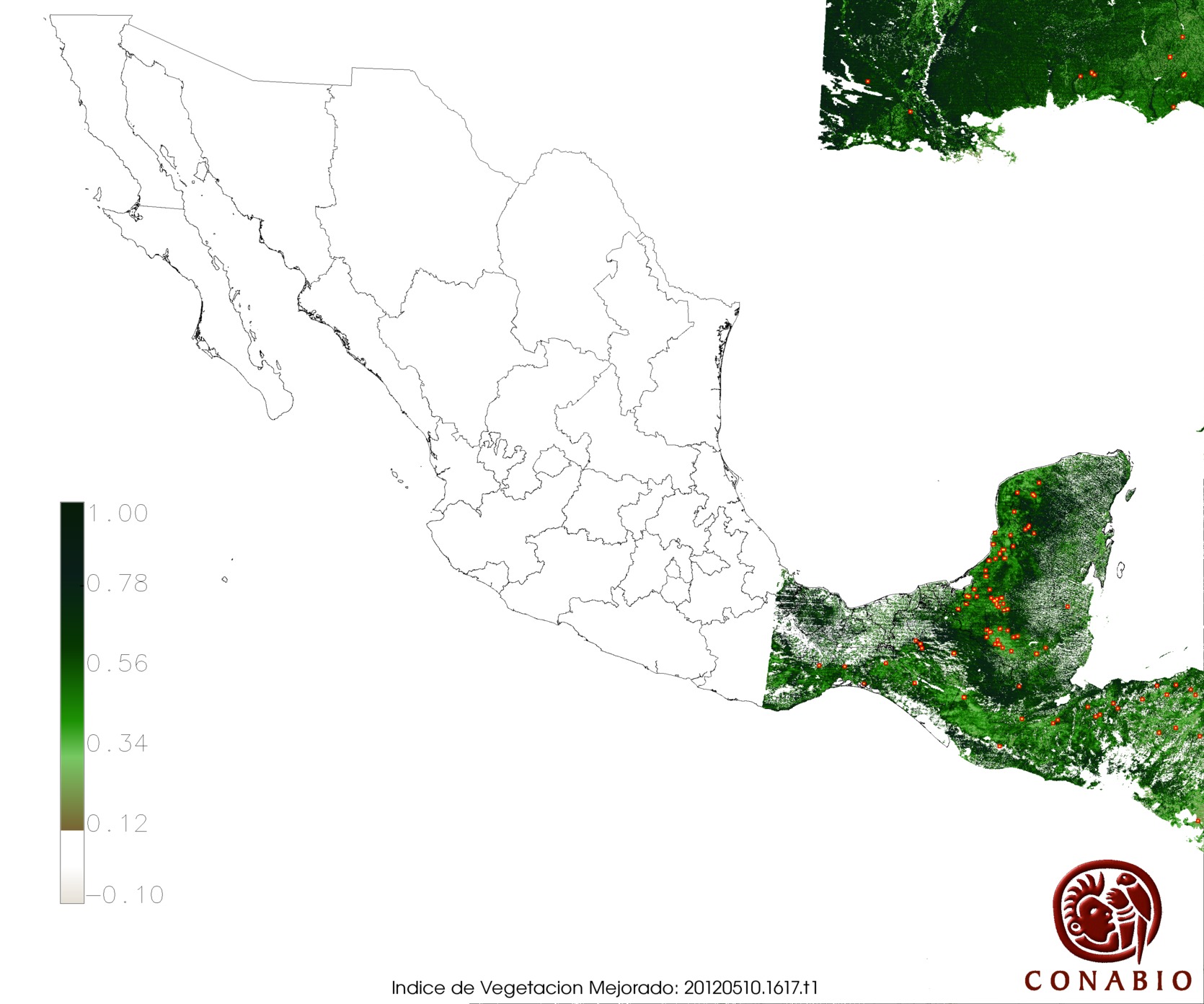 Nubosidad en el terreno:1% Nubosidad sobre México:1% Datos nulos en la escena:0% Datos nulos sobre México:0% |