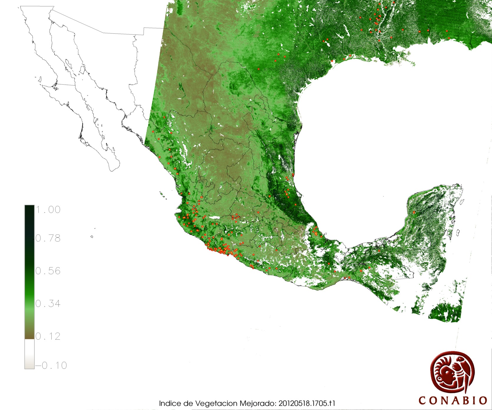 | 24 | -101 55 29 | 18 0 8 | Pastizal cultivado | La Unión de Isidoro Montes de Oca,Guerrero | NO AFECTA | 0 ° | Normal | ||