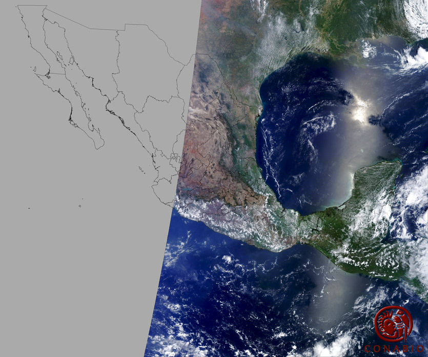Nubosidad en el terreno:5% Nubosidad sobre México:2% Datos nulos en la escena:0% Datos nulos sobre México:0% |