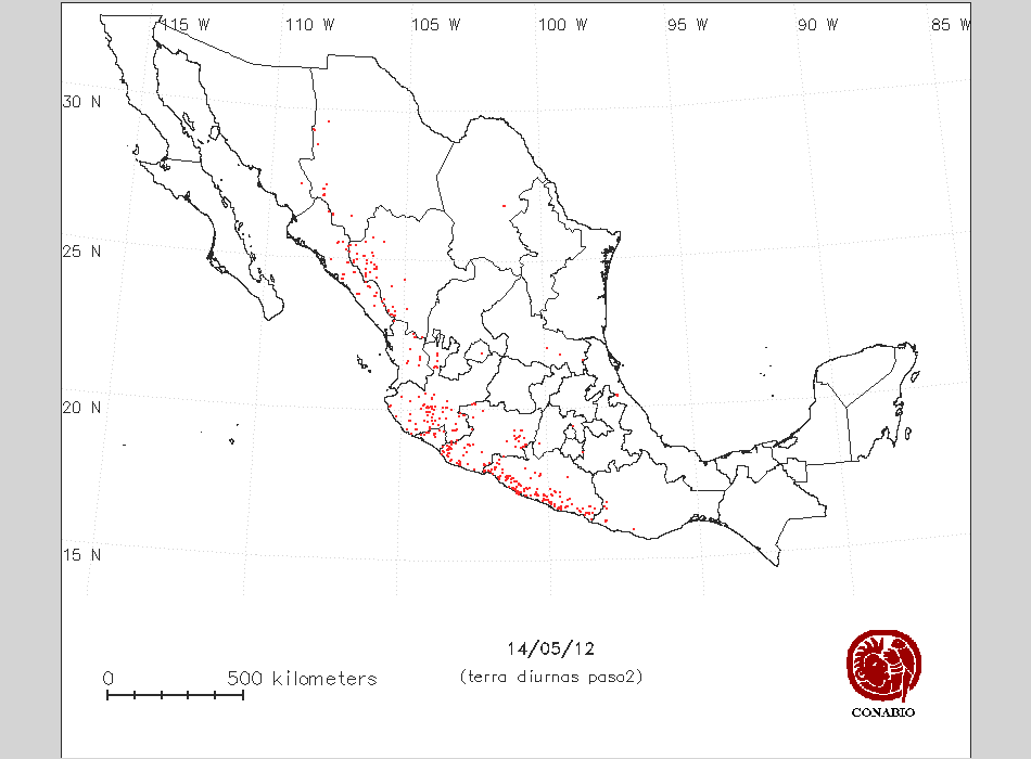| X | 62 | -105 24 10 | 23 21 6 | Bosque de pino | Pueblo Nuevo,Durango | NO AFECTA | 37 ° | Bajo | |