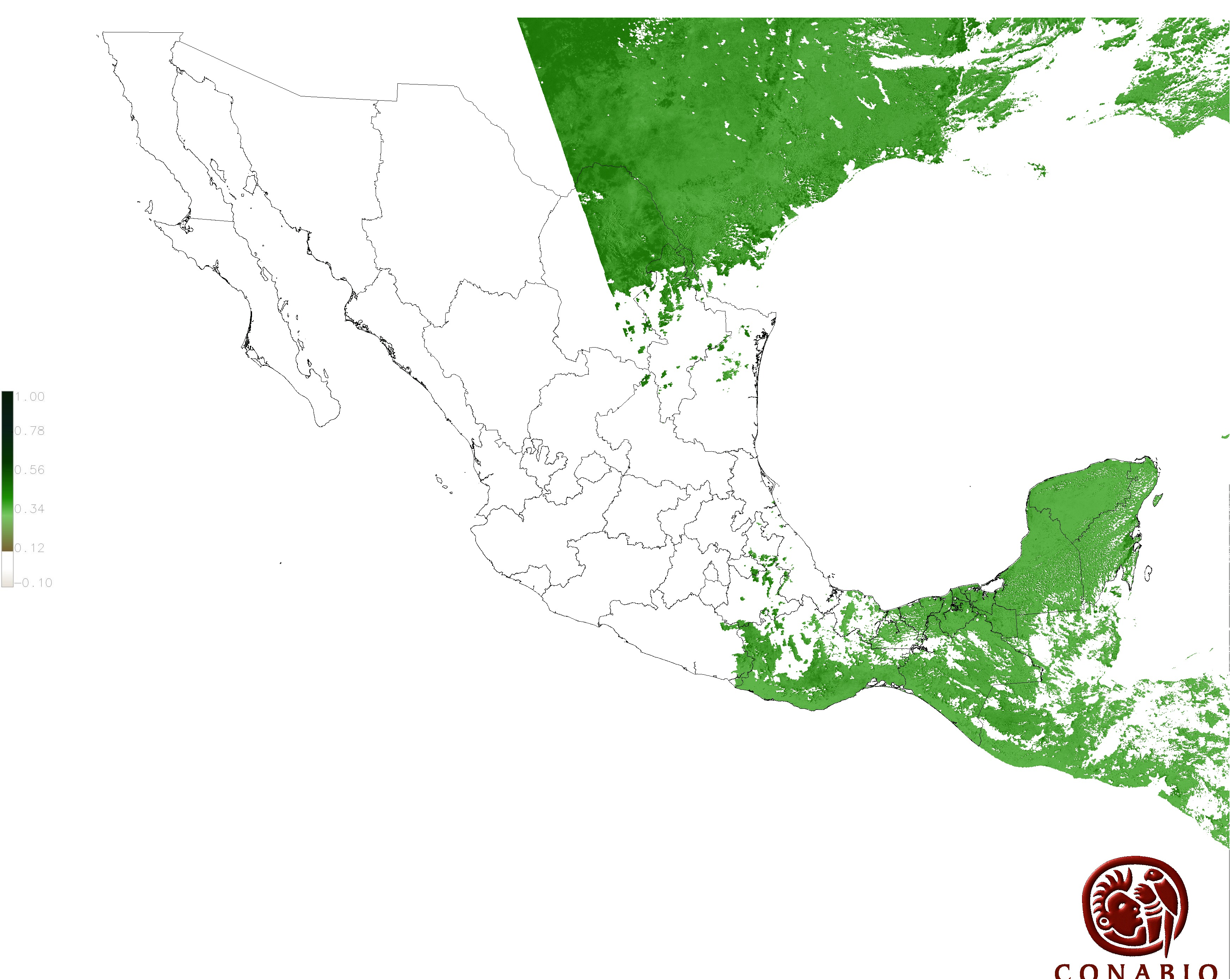 Los valores del índice van de -1 a 1, entre más cercano al valor 1 la vegetación presenta mayor vigor. Los índices de vegetación son utilizados para conocer el comportamiento de la vegetación tanto espacial como temporal. |