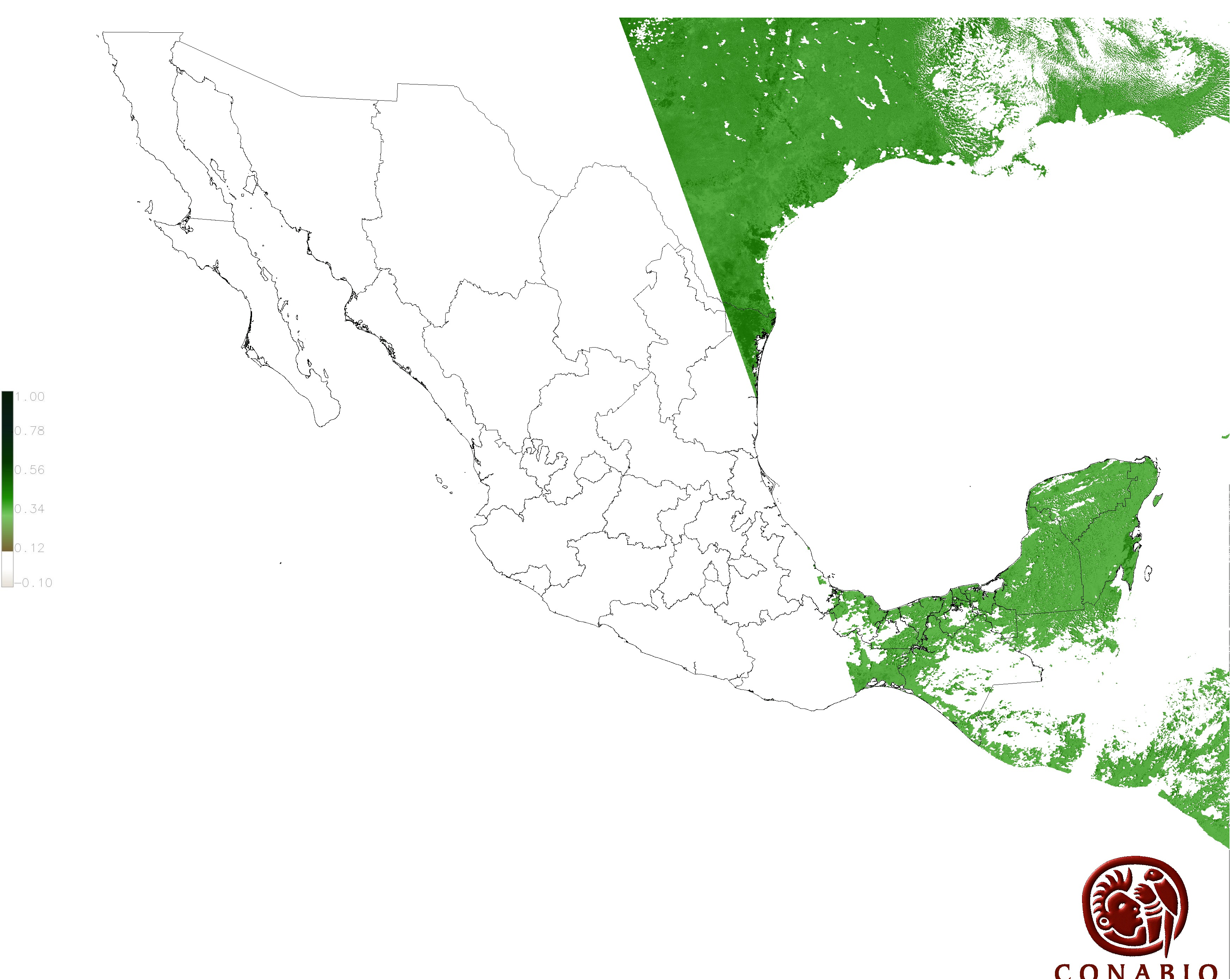 Los valores del índice van de -1 a 1, entre más cercano al valor 1 la vegetación presenta mayor vigor. Los índices de vegetación son utilizados para conocer el comportamiento de la vegetación tanto espacial como temporal. |