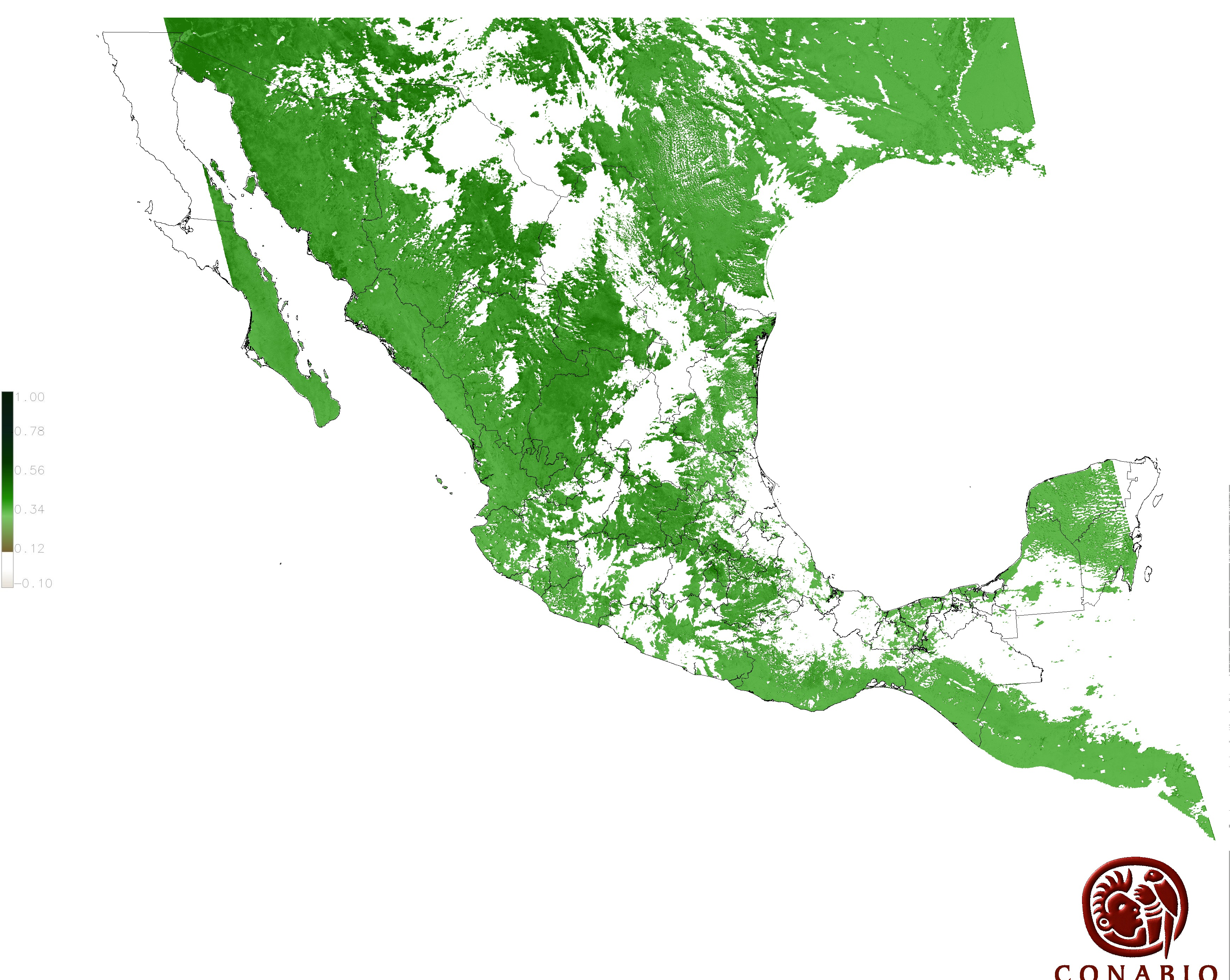 Los valores del índice van de -1 a 1, entre más cercano al valor 1 la vegetación presenta mayor vigor. Los índices de vegetación son utilizados para conocer el comportamiento de la vegetación tanto espacial como temporal. |