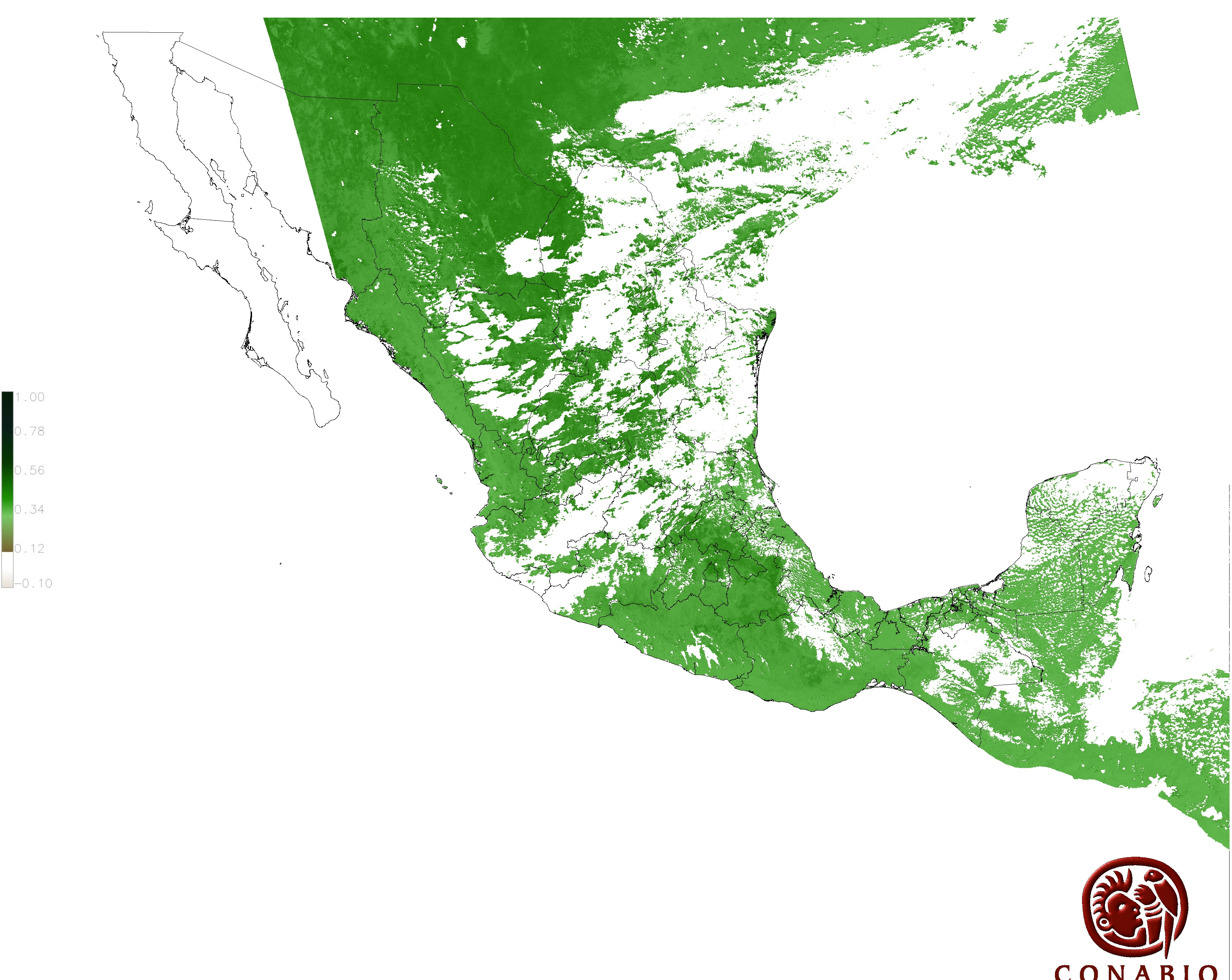 Los valores del índice van de -1 a 1, entre más cercano al valor 1 la vegetación presenta mayor vigor. Los índices de vegetación son utilizados para conocer el comportamiento de la vegetación tanto espacial como temporal. |