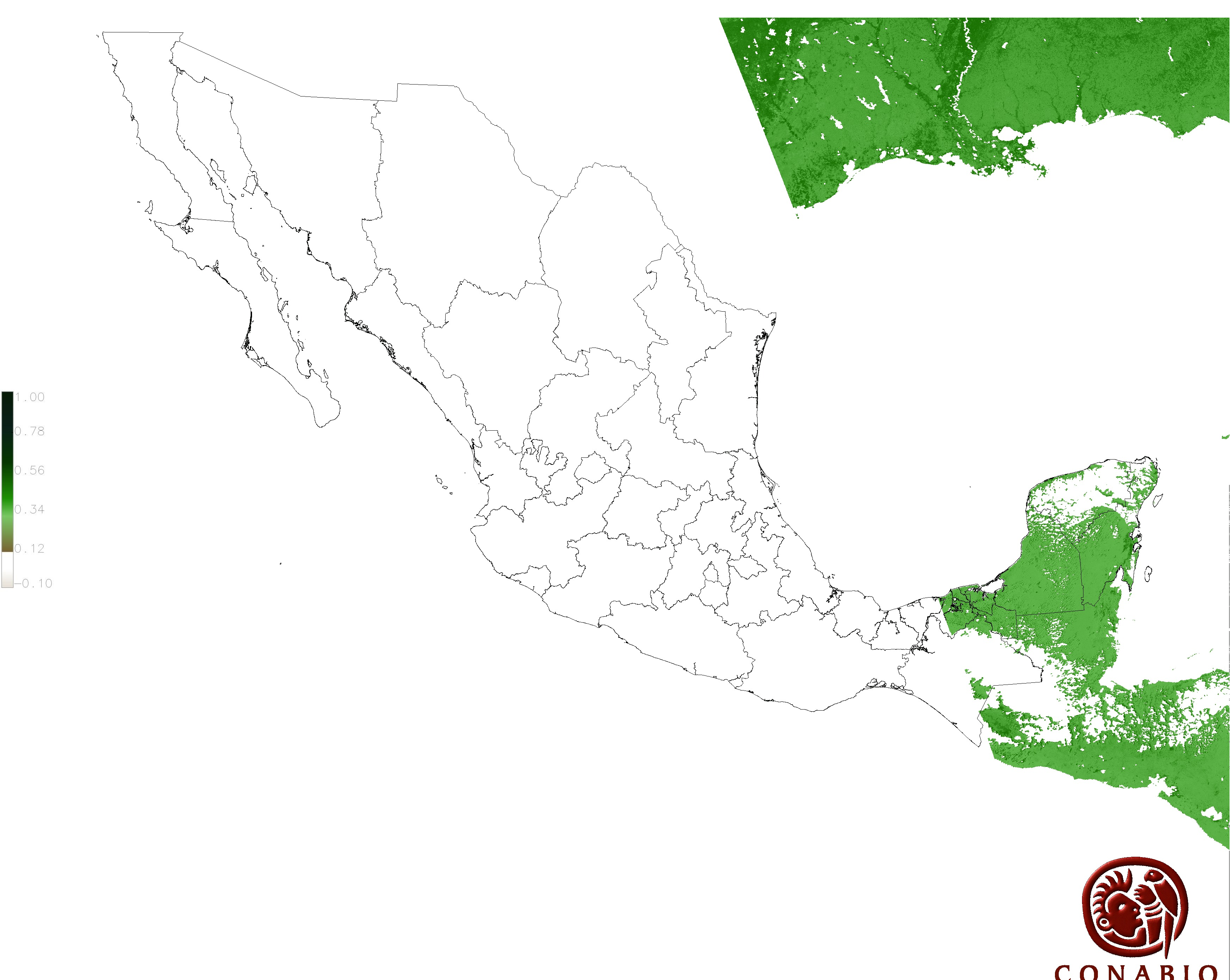Los valores del índice van de -1 a 1, entre más cercano al valor 1 la vegetación presenta mayor vigor. Los índices de vegetación son utilizados para conocer el comportamiento de la vegetación tanto espacial como temporal. |
