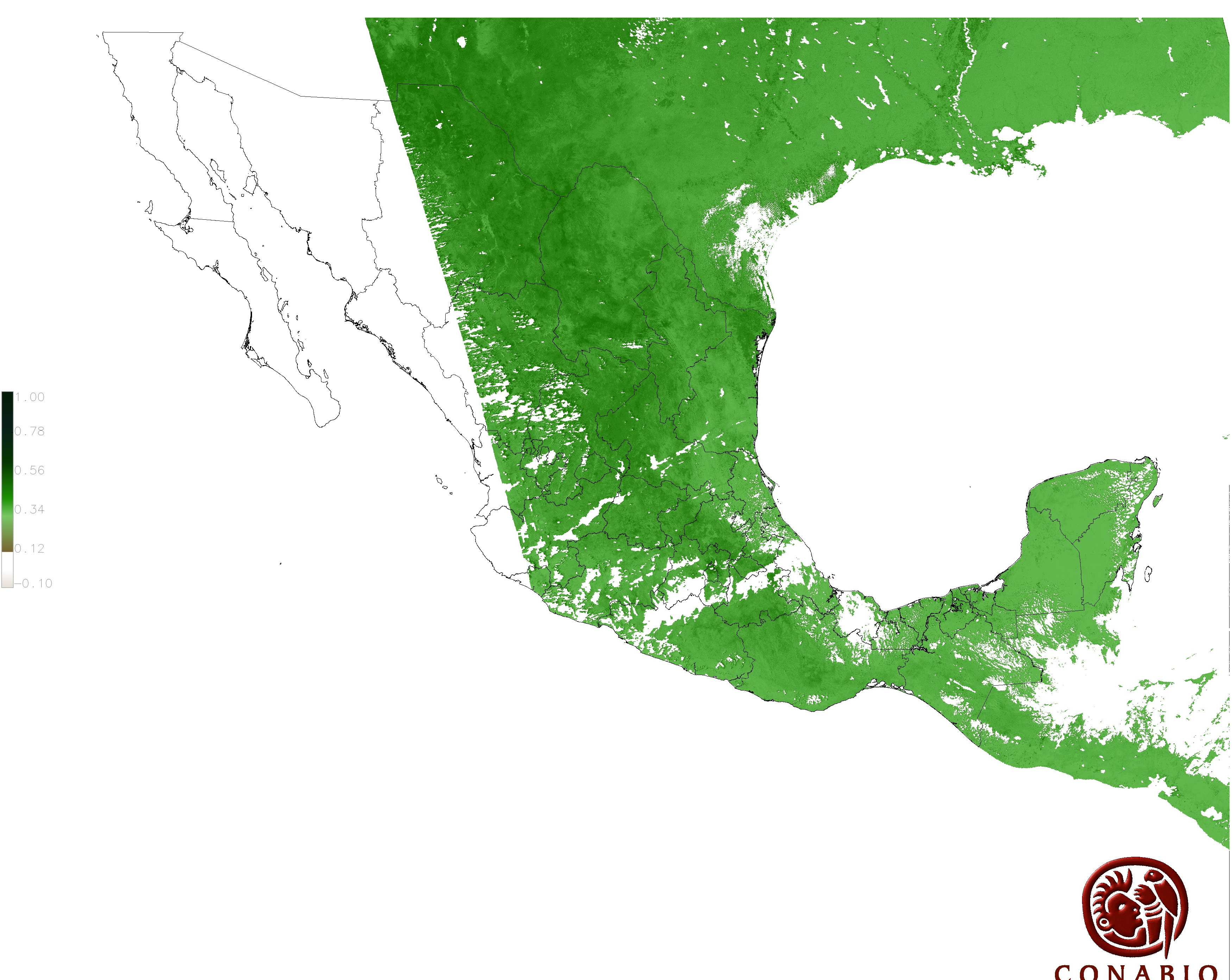 Los valores del índice van de -1 a 1, entre más cercano al valor 1 la vegetación presenta mayor vigor. Los índices de vegetación son utilizados para conocer el comportamiento de la vegetación tanto espacial como temporal. |