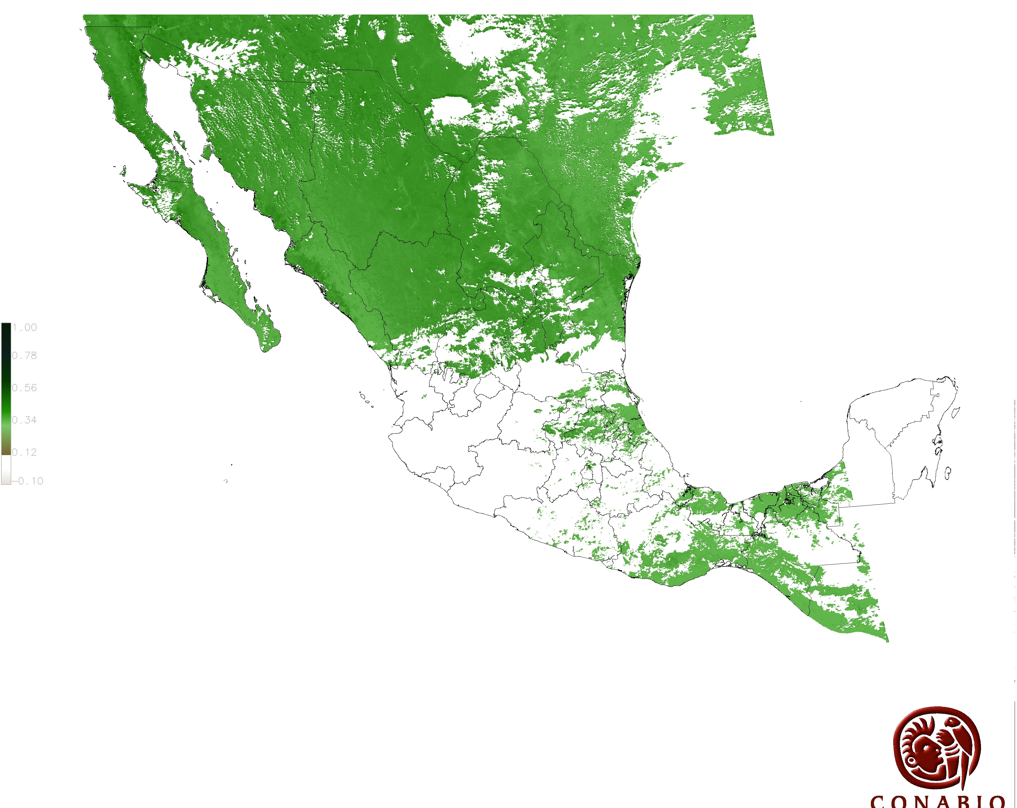Los valores del índice van de -1 a 1, entre más cercano al valor 1 la vegetación presenta mayor vigor. Los índices de vegetación son utilizados para conocer el comportamiento de la vegetación tanto espacial como temporal. |