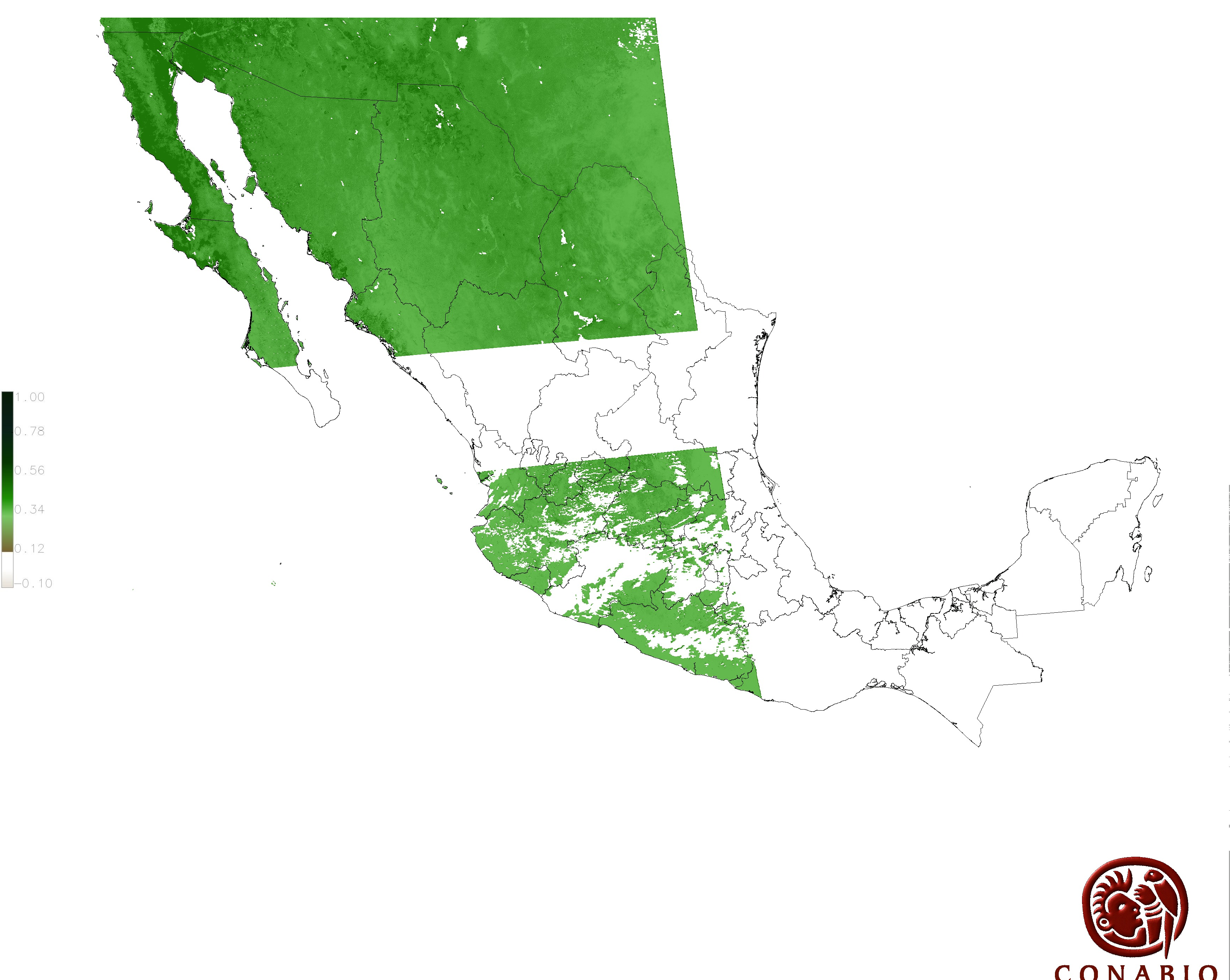 Los valores del índice van de -1 a 1, entre más cercano al valor 1 la vegetación presenta mayor vigor. Los índices de vegetación son utilizados para conocer el comportamiento de la vegetación tanto espacial como temporal. |