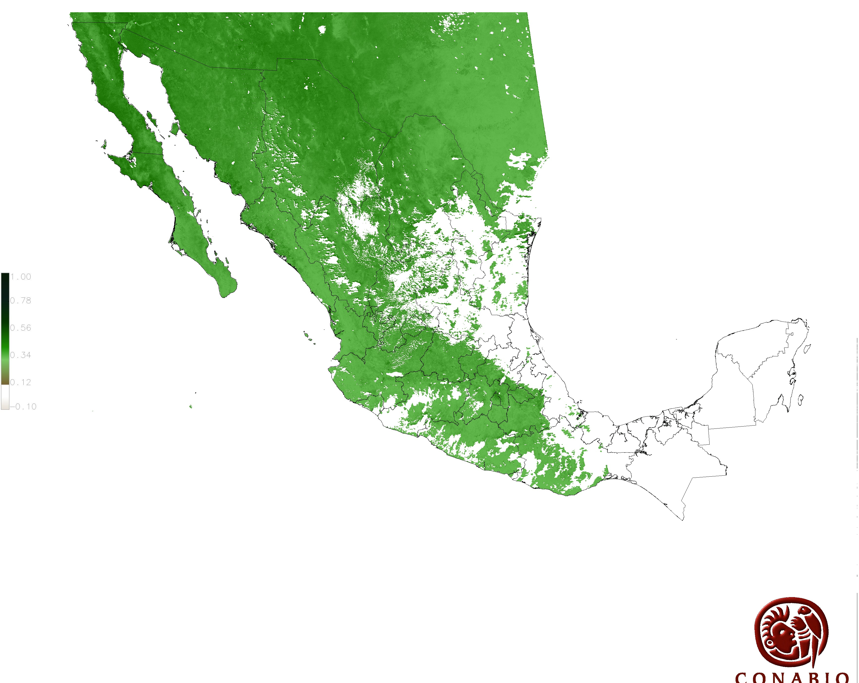 Los valores del índice van de -1 a 1, entre más cercano al valor 1 la vegetación presenta mayor vigor. Los índices de vegetación son utilizados para conocer el comportamiento de la vegetación tanto espacial como temporal. |
