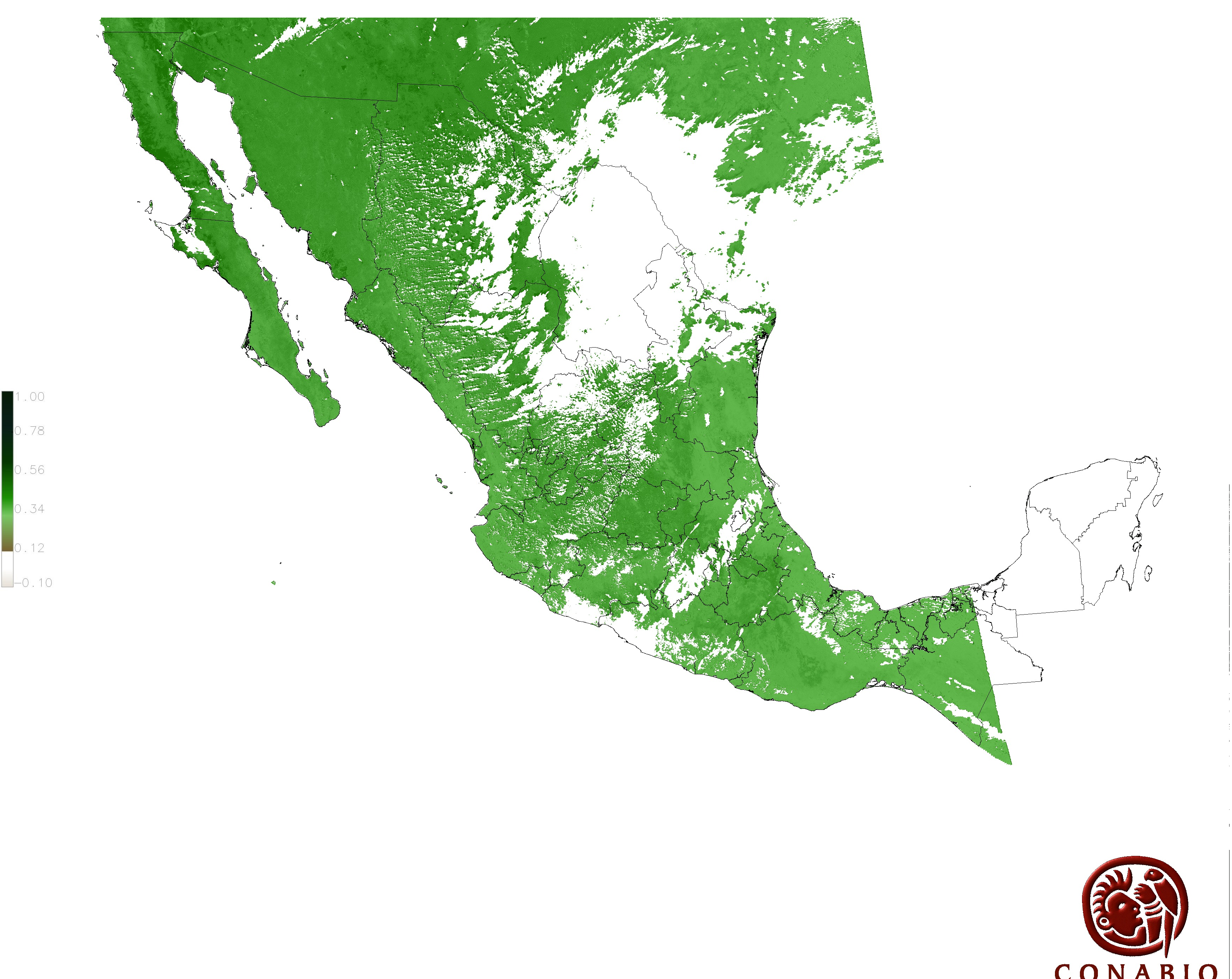 Los valores del índice van de -1 a 1, entre más cercano al valor 1 la vegetación presenta mayor vigor. Los índices de vegetación son utilizados para conocer el comportamiento de la vegetación tanto espacial como temporal. |