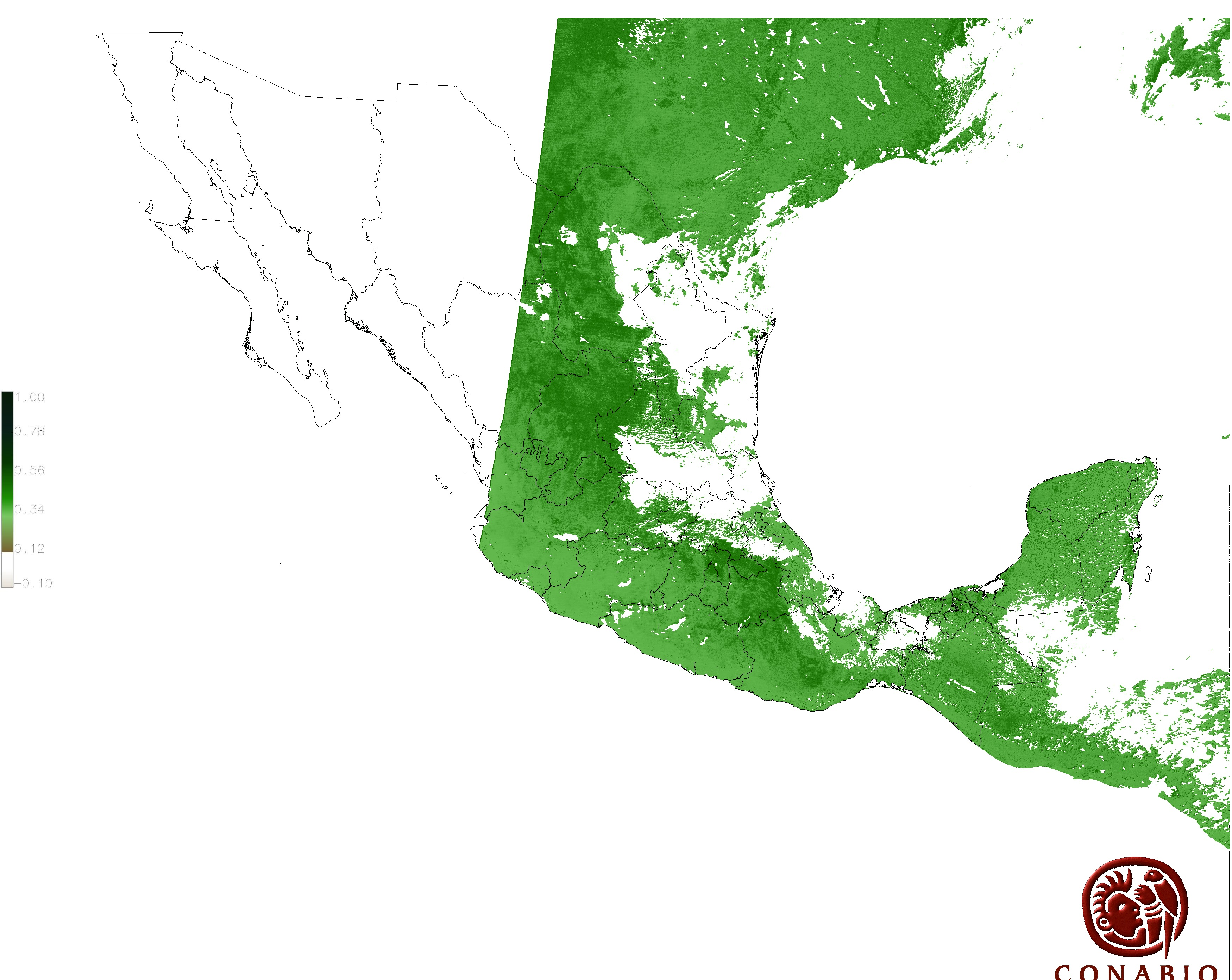 Los valores del índice van de -1 a 1, entre más cercano al valor 1 la vegetación presenta mayor vigor. Los índices de vegetación son utilizados para conocer el comportamiento de la vegetación tanto espacial como temporal. |