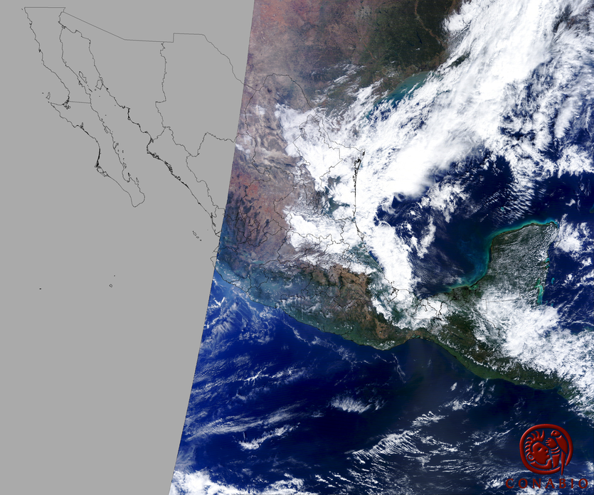 Nubosidad en el terreno:19% Nubosidad sobre México:14% Datos nulos en la escena:0% Datos nulos sobre México:0% |