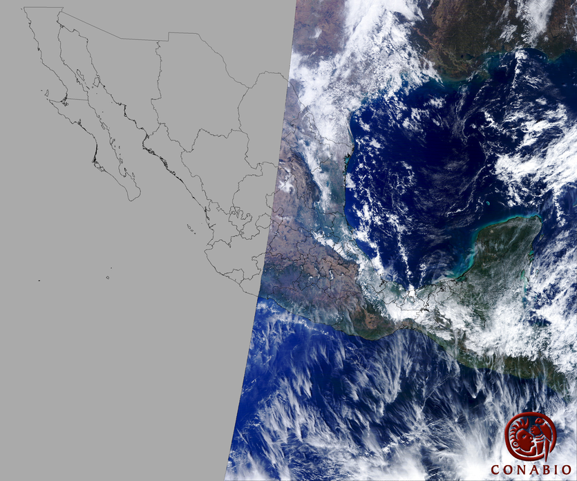 Nubosidad en el terreno:13% Nubosidad sobre México:5% Datos nulos en la escena:0% Datos nulos sobre México:0% |