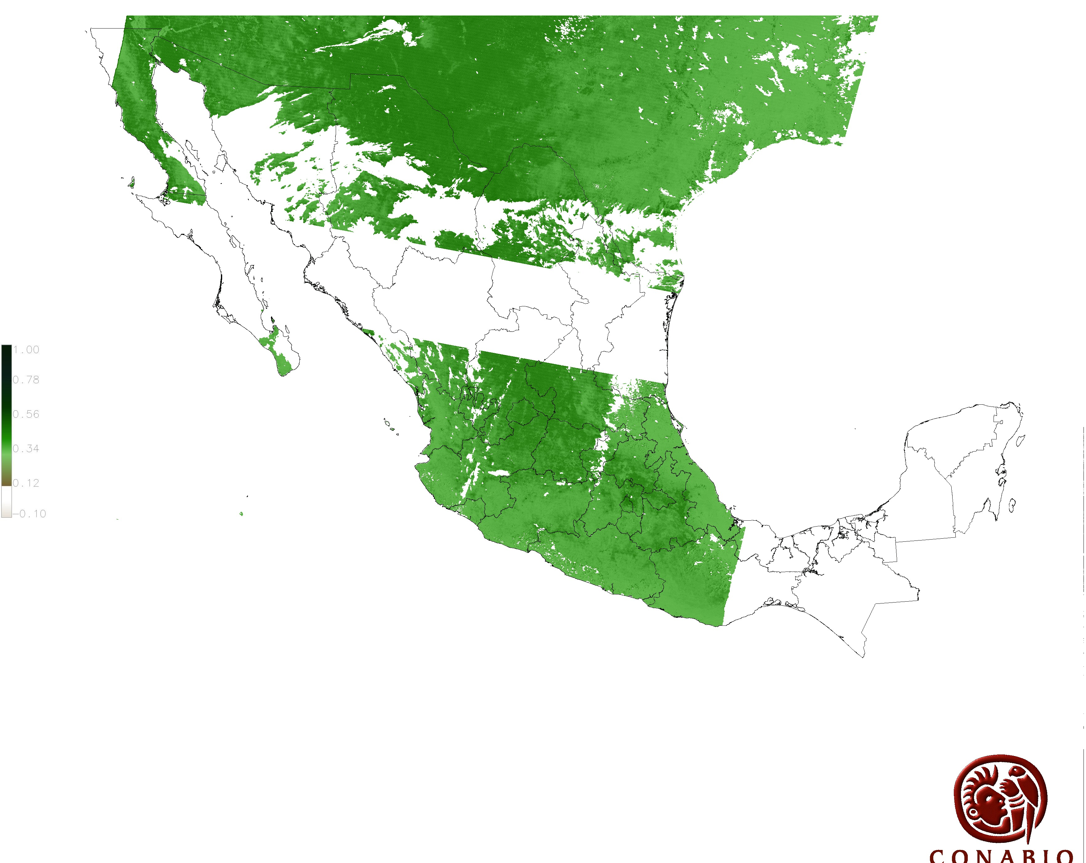Los valores del índice van de -1 a 1, entre más cercano al valor 1 la vegetación presenta mayor vigor. Los índices de vegetación son utilizados para conocer el comportamiento de la vegetación tanto espacial como temporal. |