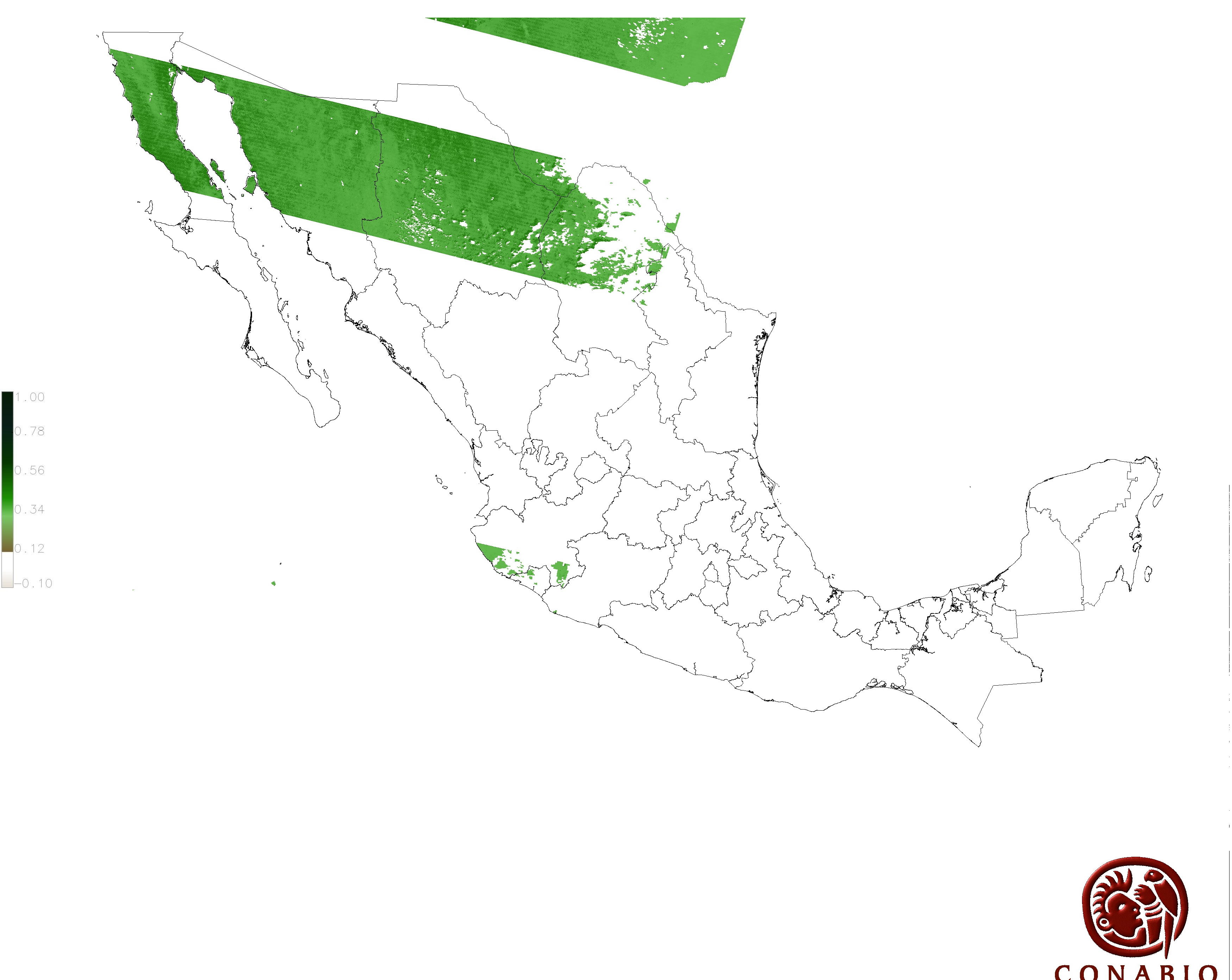 Los valores del índice van de -1 a 1, entre más cercano al valor 1 la vegetación presenta mayor vigor. Los índices de vegetación son utilizados para conocer el comportamiento de la vegetación tanto espacial como temporal. |
