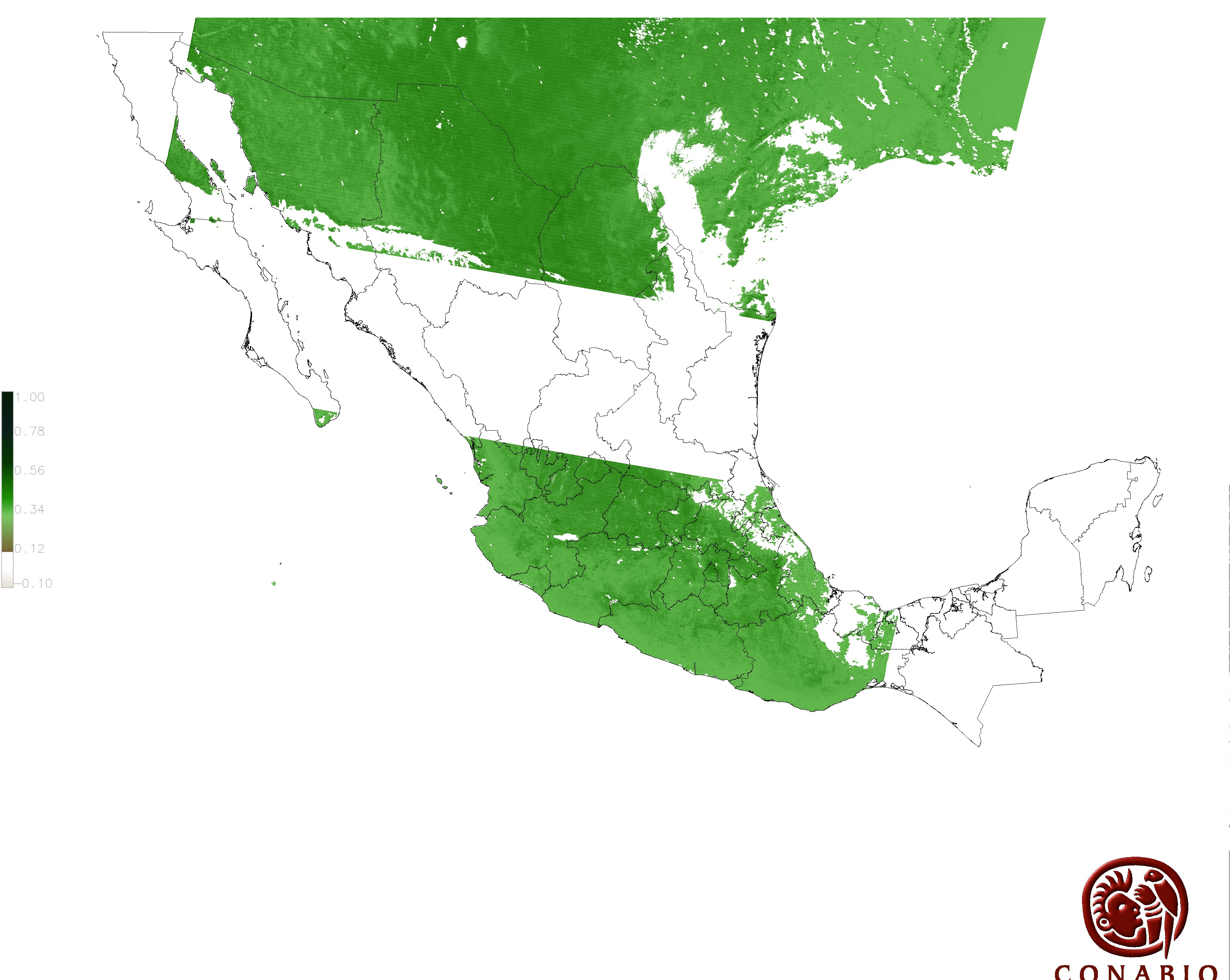 Los valores del índice van de -1 a 1, entre más cercano al valor 1 la vegetación presenta mayor vigor. Los índices de vegetación son utilizados para conocer el comportamiento de la vegetación tanto espacial como temporal. |