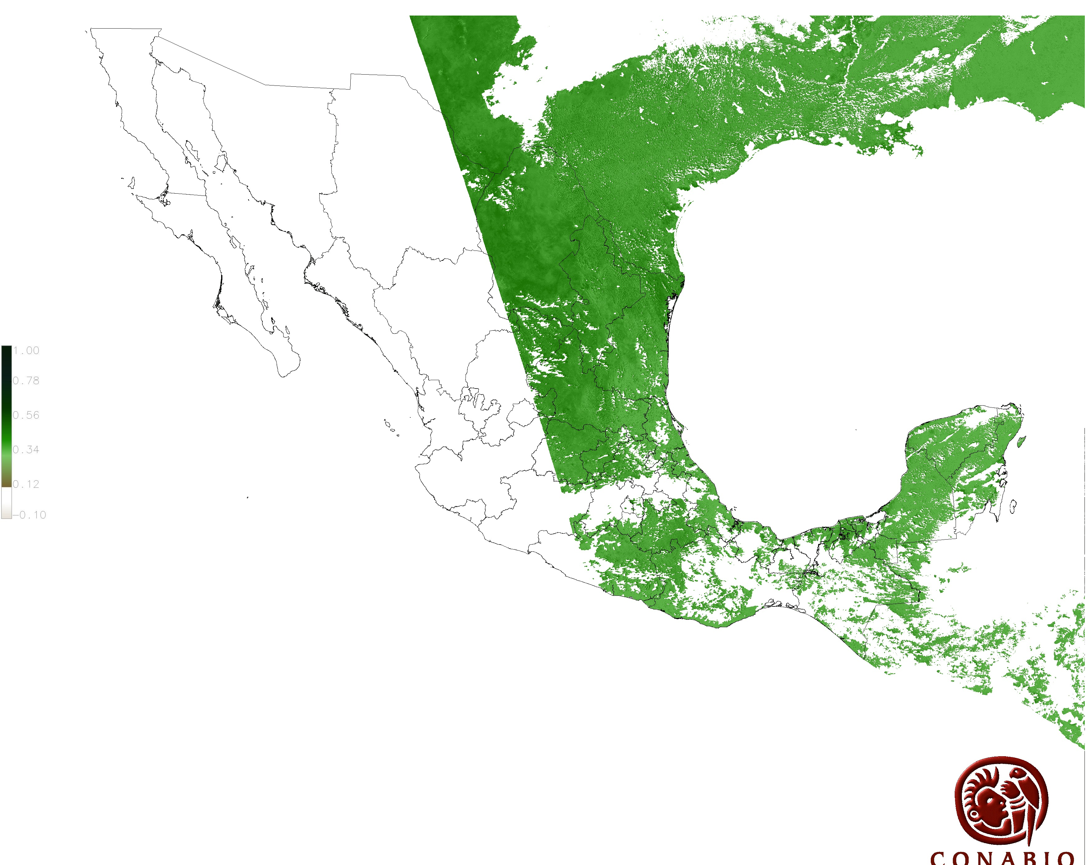 Los valores del índice van de -1 a 1, entre más cercano al valor 1 la vegetación presenta mayor vigor. Los índices de vegetación son utilizados para conocer el comportamiento de la vegetación tanto espacial como temporal. |