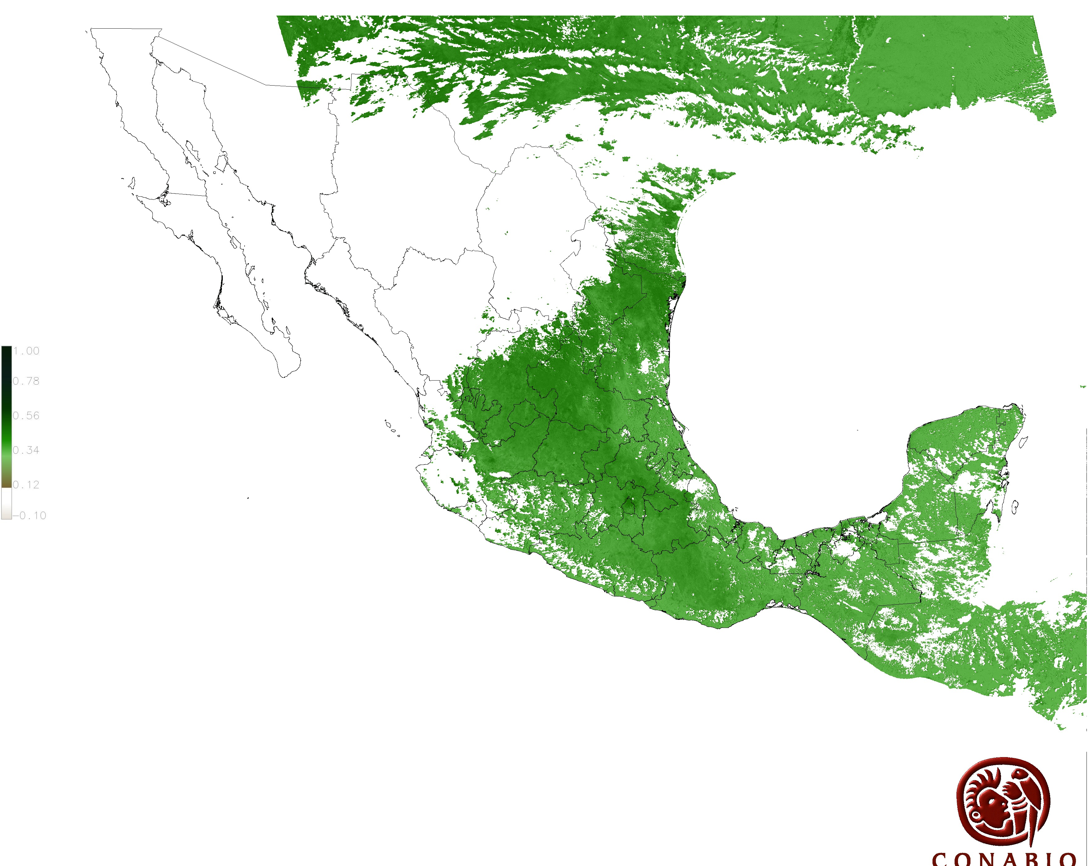 Los valores del índice van de -1 a 1, entre más cercano al valor 1 la vegetación presenta mayor vigor. Los índices de vegetación son utilizados para conocer el comportamiento de la vegetación tanto espacial como temporal. |